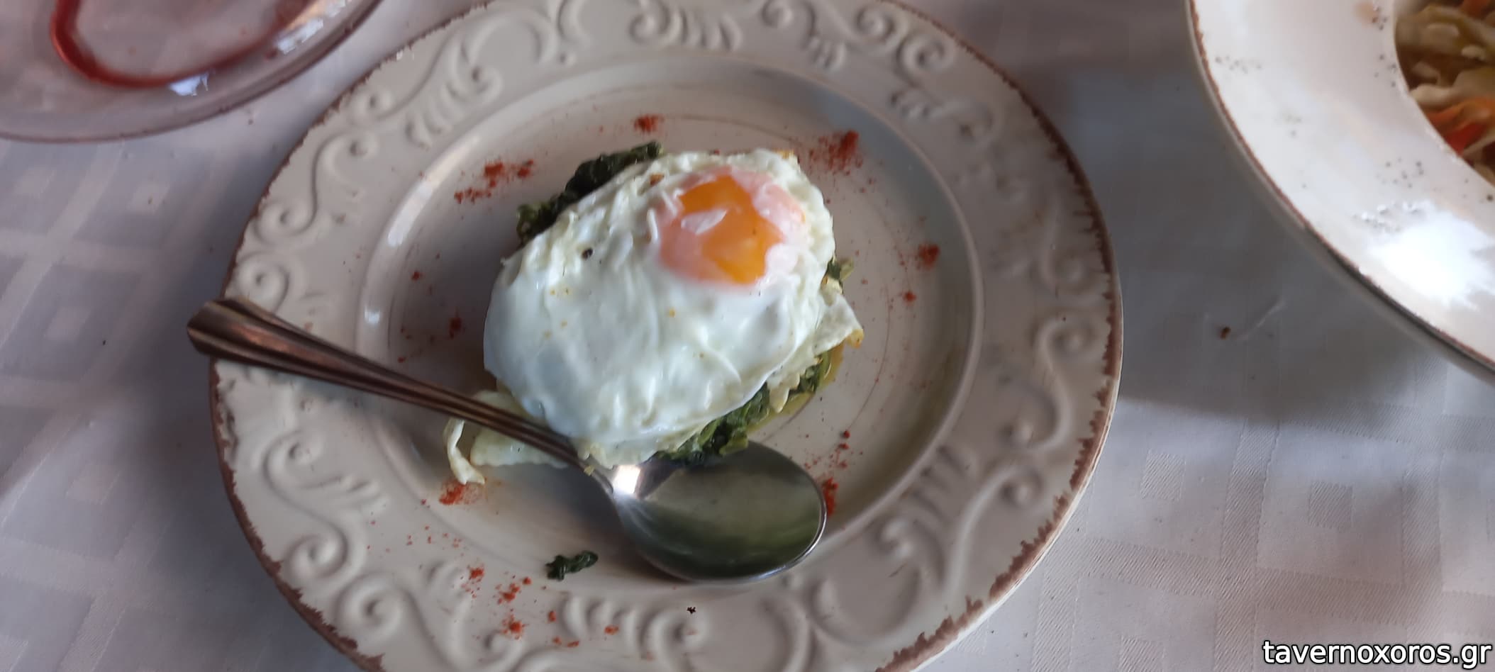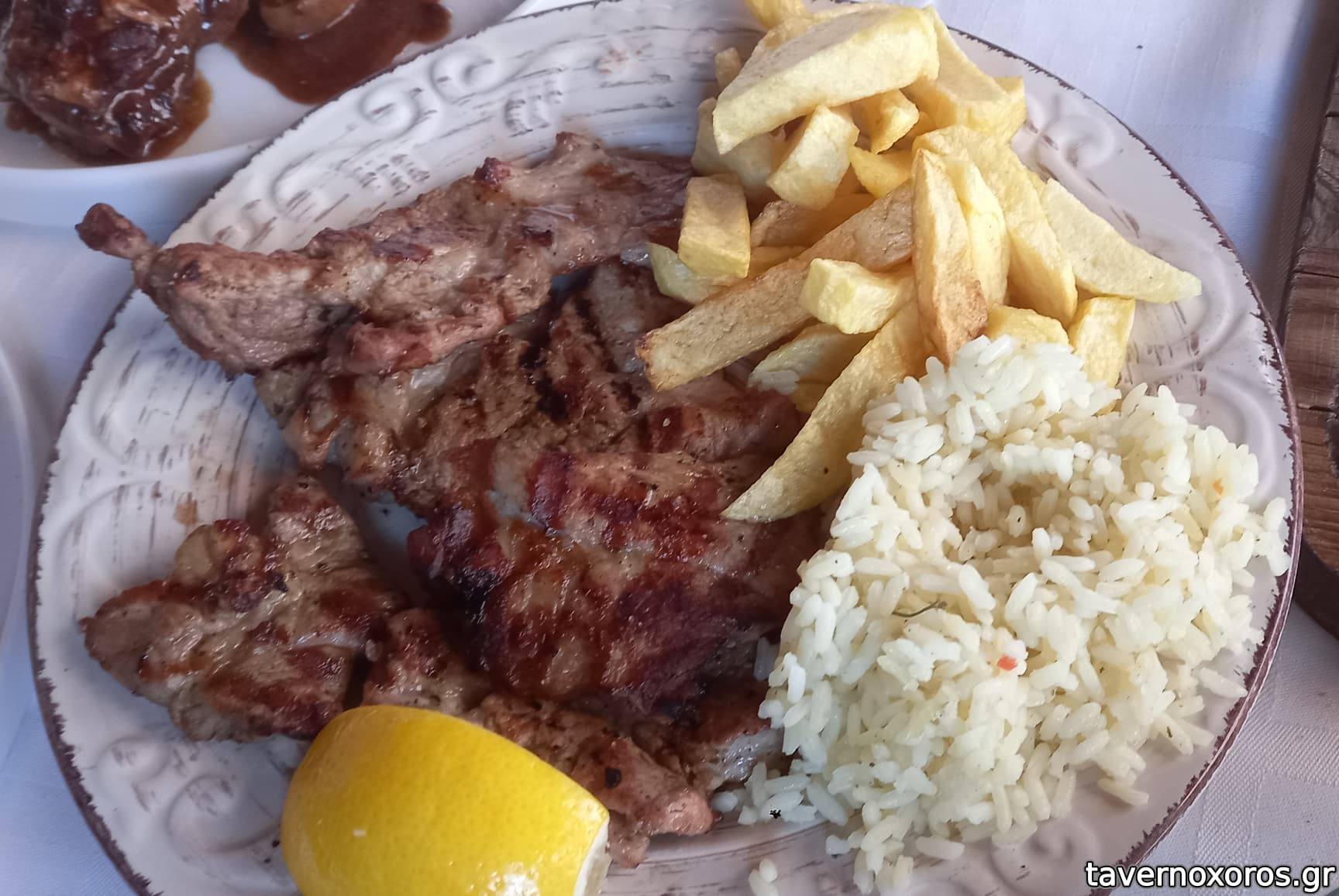 Δοκιμάστηκαν αμυγδαλοσατάτα (καλή), φάβα (πολύ καλή), ντάκος (καλός), πατάτες τηγανητές (καλές) και από κυρίως μπιφτέκια (πολύ καλά) και χοιρινή σπαλομπριζόλα (καλή). Κρασί λευκό χύμα αξιοπρεπές, ρακή πολύ καλή. Κερασμένο γλυκό στο τέλος αδιάφορο.