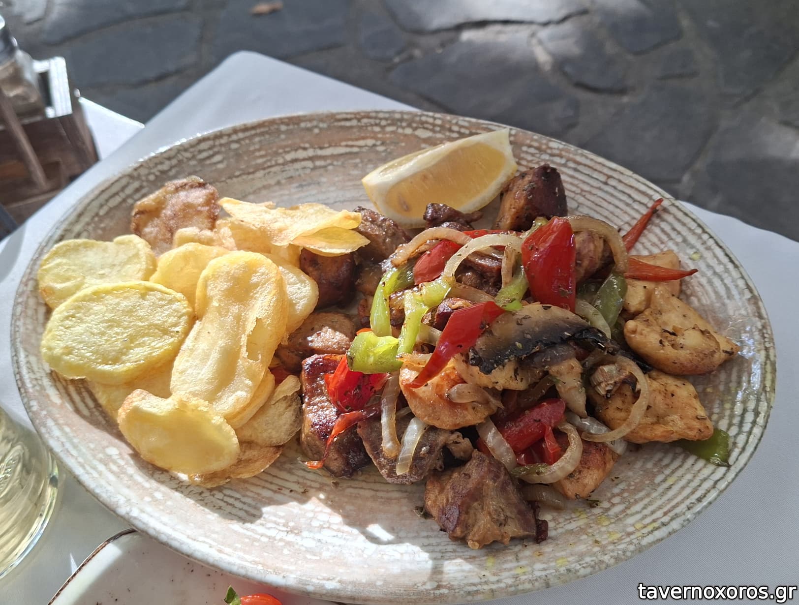 Στα του φαγητού, παραγγείλαμε τζατζίκι και τυροκαυτερή, αμφότερα χειροποίητα και νόστιμα, πατάτες τηγανητες στο χέρι (καλές), ένα σκουμπρί, μια τηγανιά χοιρινή που ήταν καλή, από 4 τεμάχια σουβλάκι χοιρινό (καλό), σουβλάκι κοτόπουλο (οκ, μάλλον παραψήθηκε) και πανσέτα (καλή) και ένα γιαουρτλού κεμπαπ (η μοναδική αστοχία, ο κιμας άνευρος και περίεργα μαλακός).