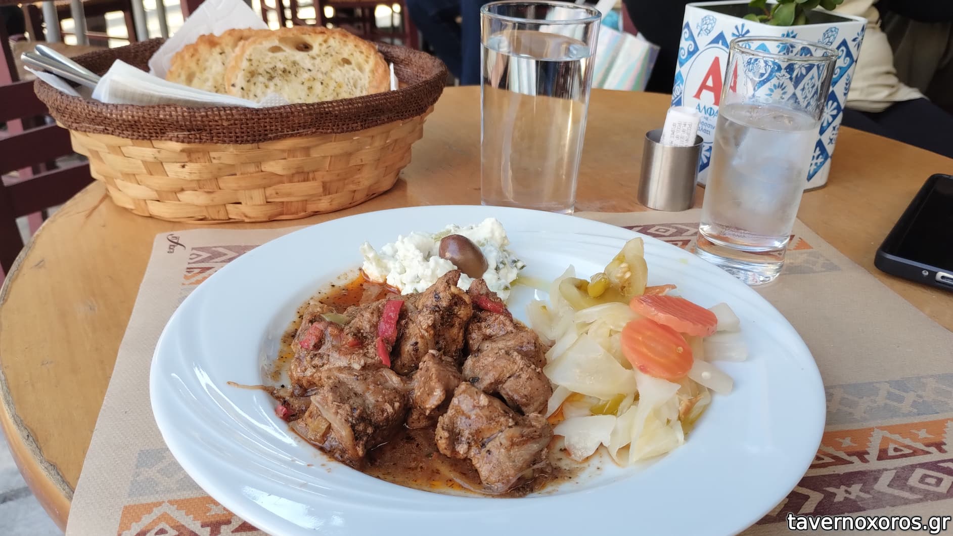 Πήραμε τα φαγητά των φωτό και 1-2 ακόμα: Συκώτι Μόσχου, Χοιρινά μπριζόλακια κρασάτα, Κοτόπουλο μουστάρδα, μανιτάρια, φάβα, ψητά λαχανικά και κολοκυθάκια στικς. Τα χοιρινά μπριζολάκια ήταν το καλύτερο πιάτο, ενώ τα άλλα ήταν αδιάφορα και γενικά πολύ basic. Θετική μνεία στα σκορδόψωμα, που με τρελαίνουν θετικά. Λογαριασμός για 3 άτομα βγήκε γύρω στα 70 ευρώ.