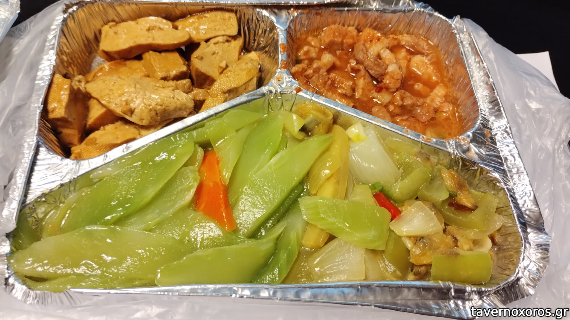 Τα φαγητά ήταν φουλ κινεζικά. Για μένα ξεχώρισε το καπνιστό τόφου (δείτε φωτό)