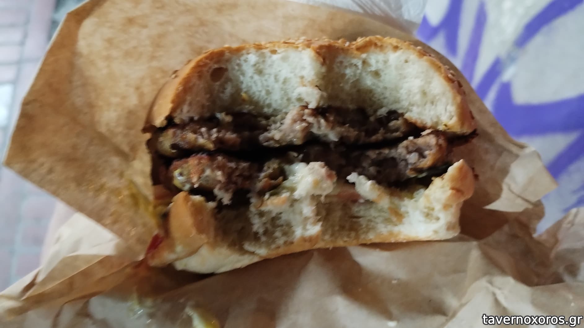 Double burger (τυποποιημένα μπιφτέκια, αλλά ζουμερά και καλό αποτέλεσμα. Θύμιζε το παλιό μπέργκερ goodys. 3,9ε)