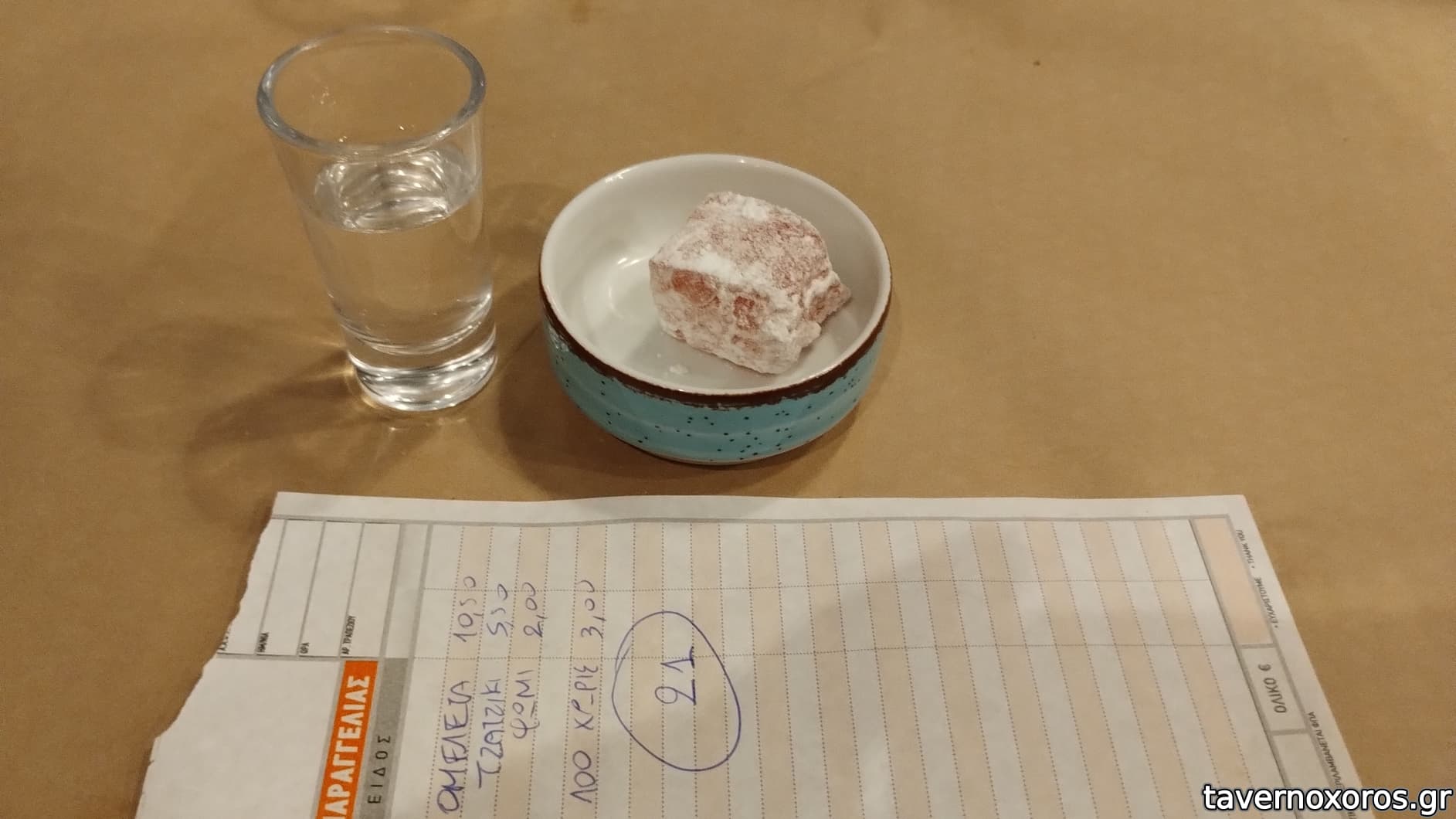 Λογαριασμός μαζί με λουκούμι και ρακι κερασμένο)