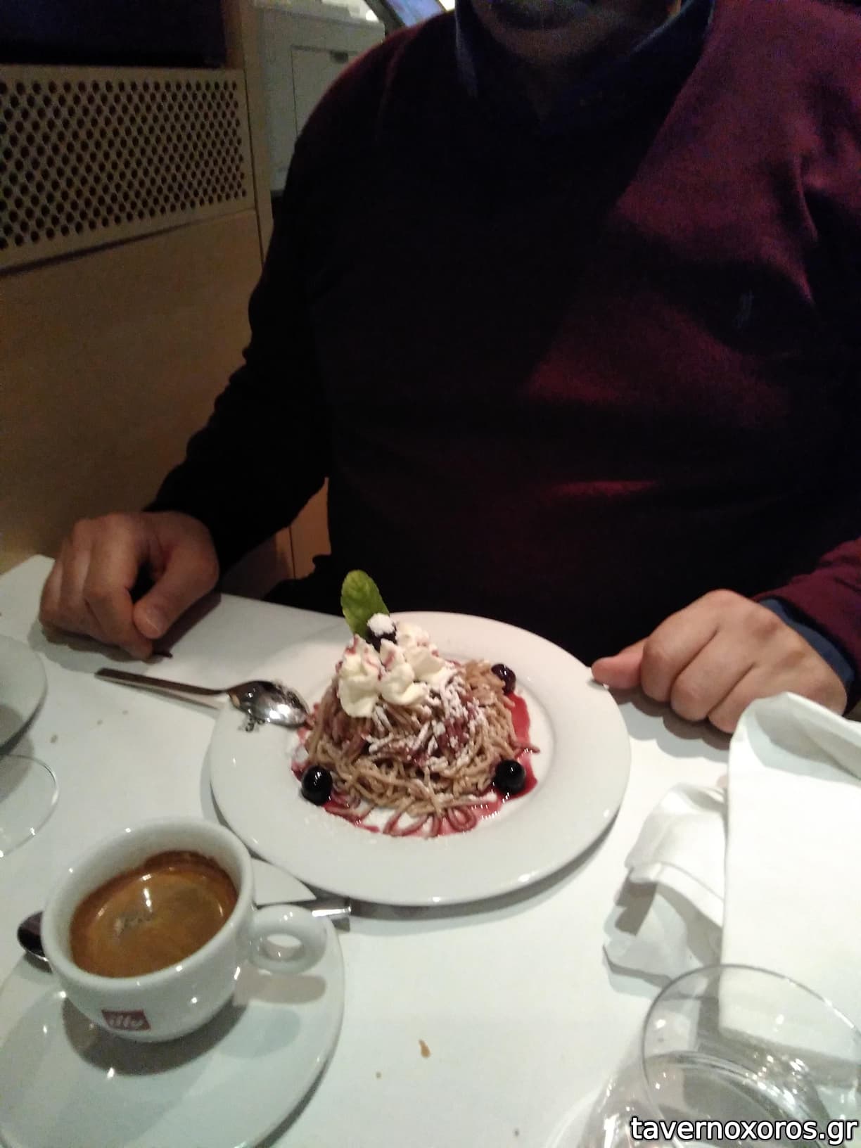 Maronireis (γλυκό με κάστανο και κρέμα σαντιγί, σερβίρεται παραδοσιακά ως επιδόρπιο τις ημέρες γύρω από τη γιορτή του Αγίου Μαρτίνου)
