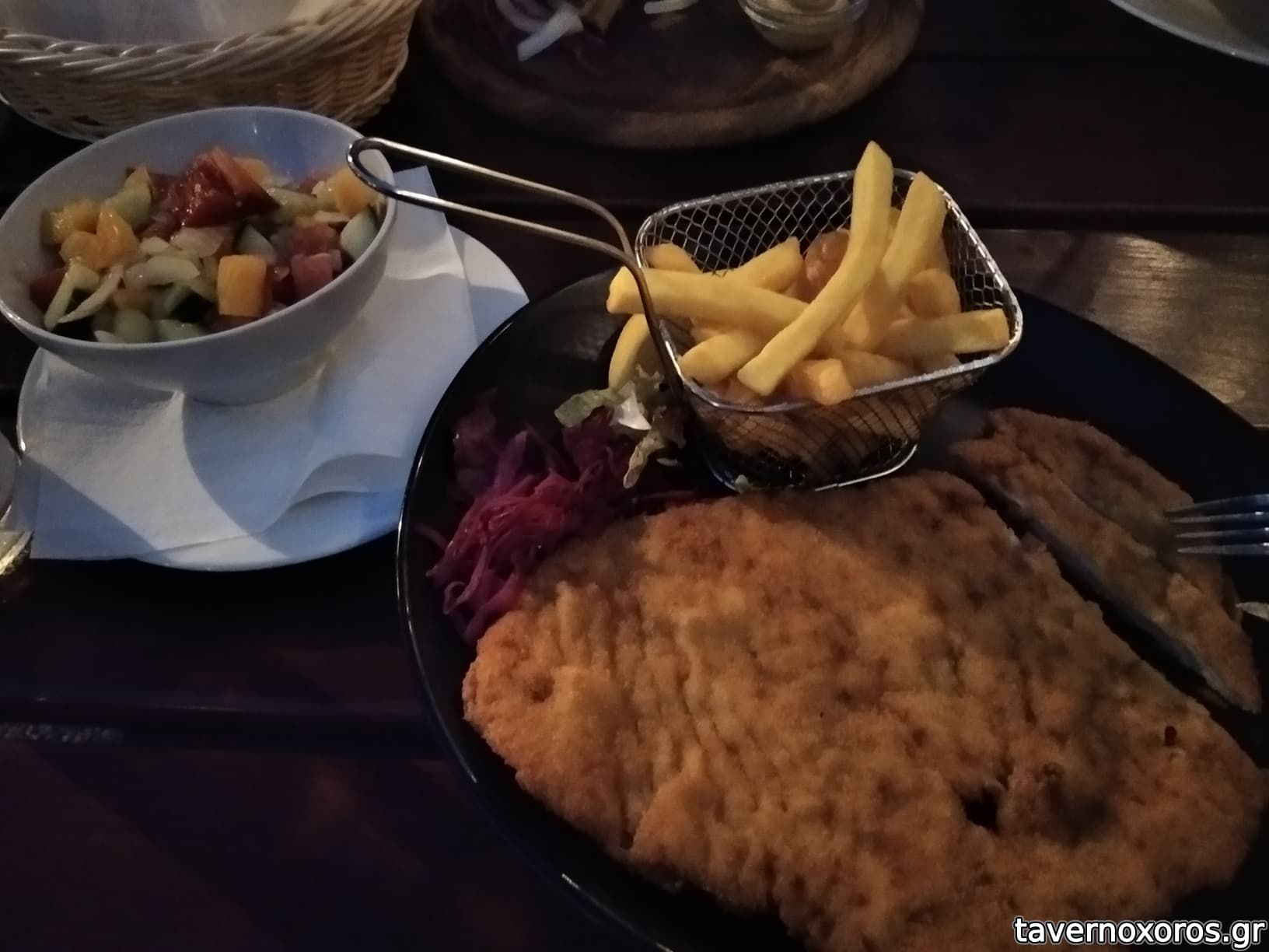Χοιρινό σνίτσελ & συνοδευτικά