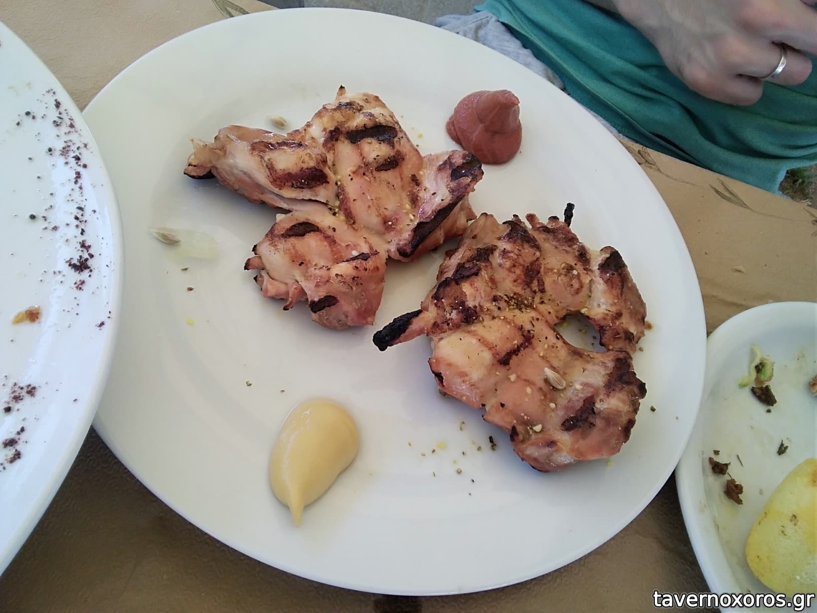 Μια χαρά ήταν τα παϊδάκια του και επιτέλους ένα σωστό τζατζίκι (σπιτικό) και όπως πρέπει και η χωριάτικη. Το ψωμάκι ψημένο στα κάρβουνα. Χαλαρό σέρβις παλιάς ταβέρνας. Συνολικά δώσαμε 70 ευρώ για 3 άτομα.