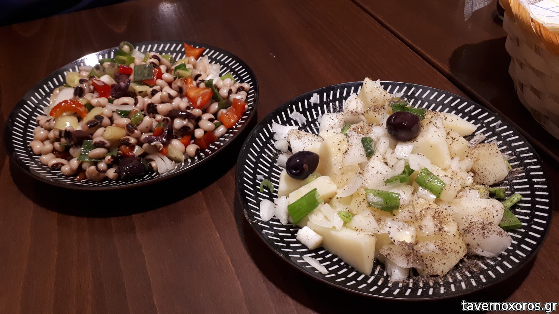 Δοκιμάσαμε δύο απλούς μεζέδες. Μαυρομάτικα φασούλια, πατατοσαλάτα, και μπόλικο ψωμί. Και τα δύο πιάτα υπέροχα. Με το λαδάκι τους, και τη νοστιμιά τους. Ήπιαμε και 3 ρετσίνες. Το σέρβις ήταν εξυπηρετικότατο και πολύ φιλικό. Πληρώσαμε 25 ευρώ, νορμάλ. Δεν βγήκε κάποιο γλυκάκι.