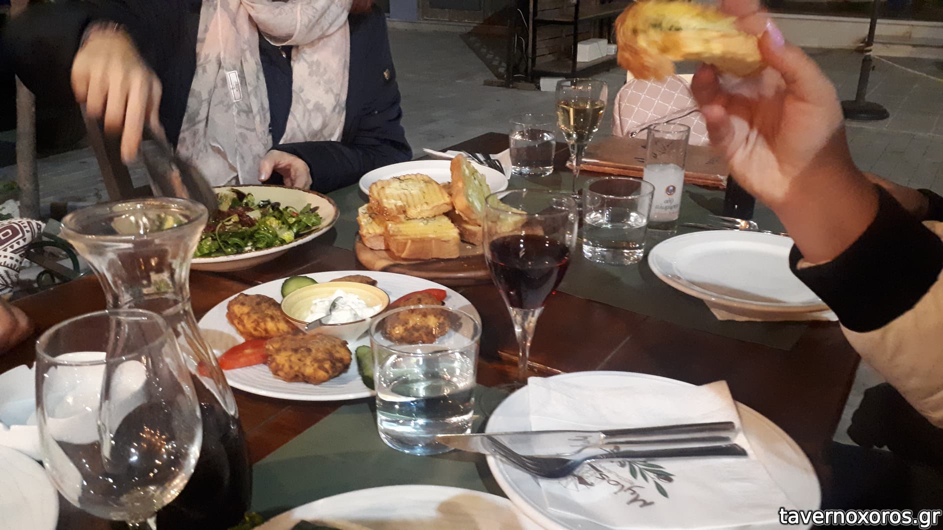 Καθήσαμε έξω και κρυώσαμε λιγουλάκι, αλλά μας ζέστανε το τσίπουρο και ο χουλιαμάς.