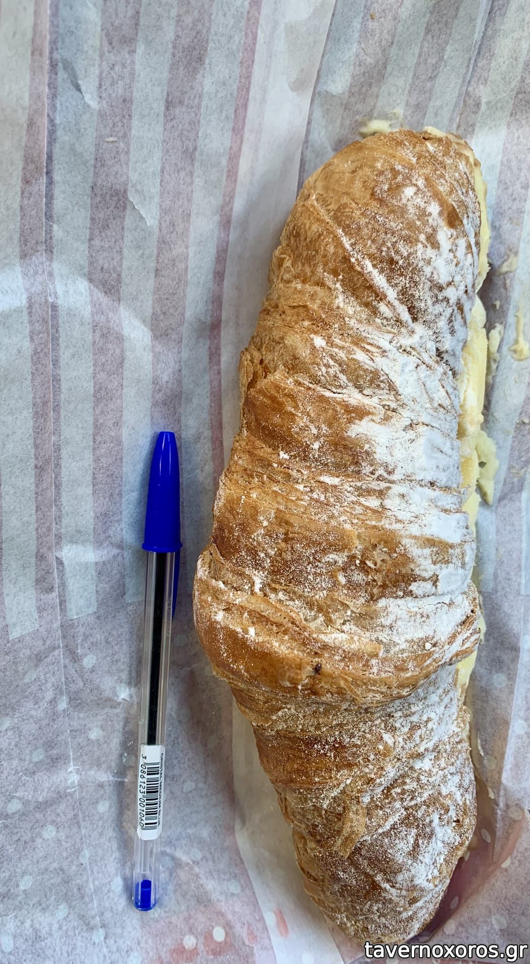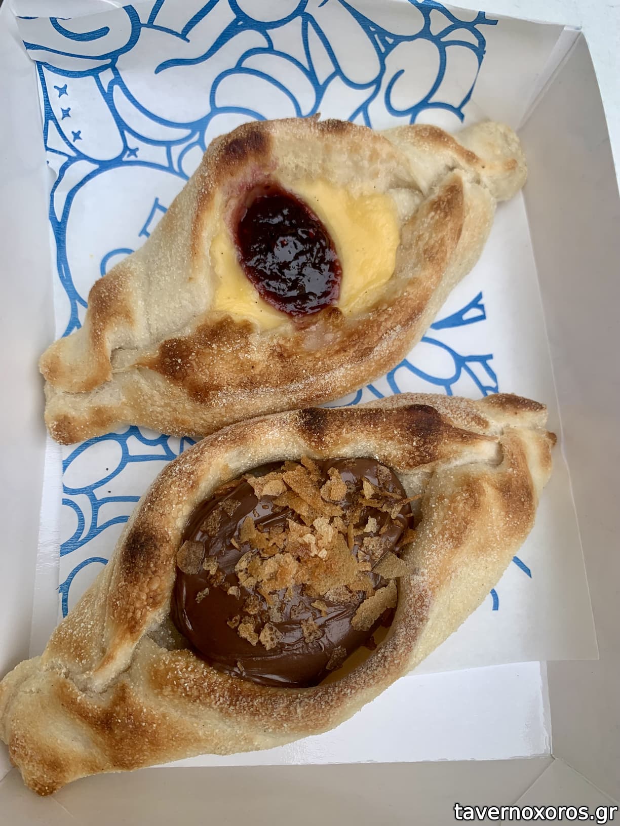 Μικρό πεϊνιρλί, κρέμα patisserie (πάνω), πραλίνα φουντουκιού (κάτω).