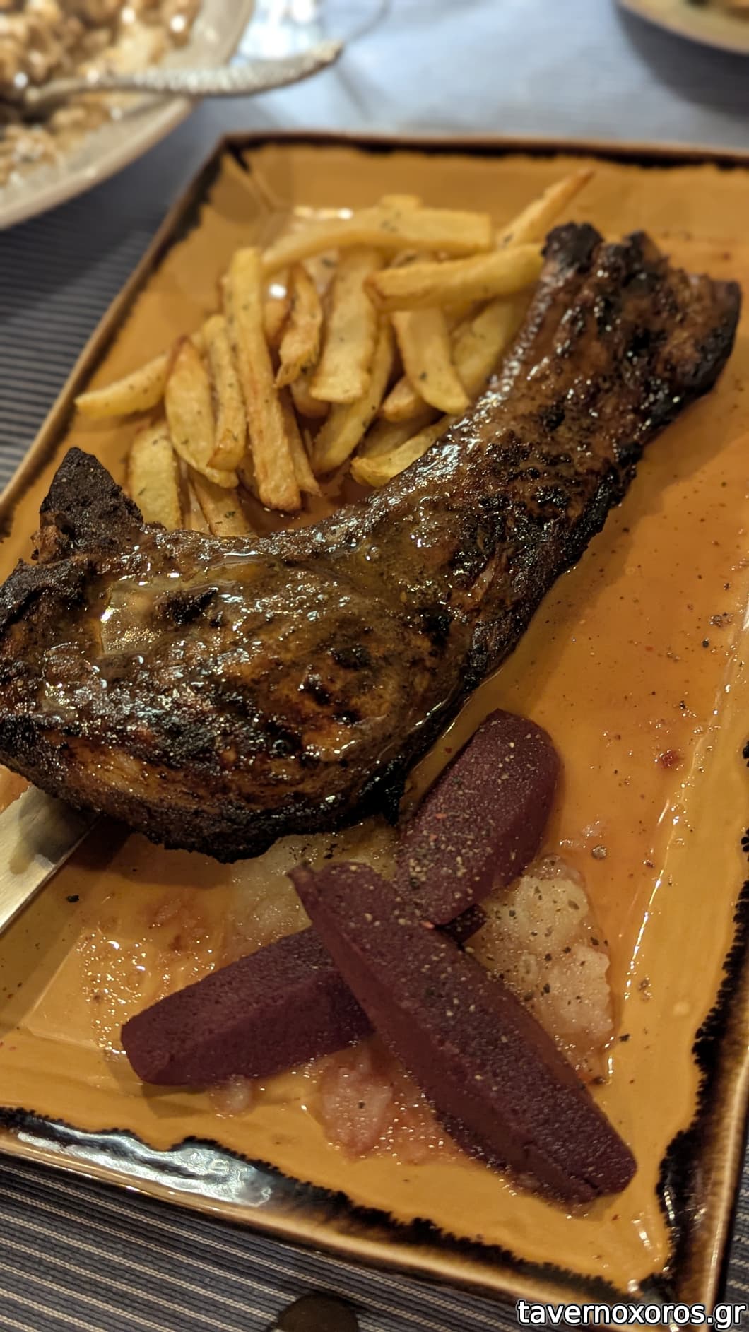 Λοιπόν: 1μερίδα πατάτες baby φούρνου, 1μερίδα πατάτες τηγανητές, 1μοσχαράκι γιουβέτσι, 1μερίδα μπιφτέκι, 1 μερίδα σουβλάκι κοτόπουλο. Το σύνολο στα 50€. Το γιουβέτσι νόστιμο, τα σουβλάκια κοτόπουλο σκληρό (3 στη μερίδα, μάλλον στήθος παραψημένο) και το μπιφτέκι οκ..