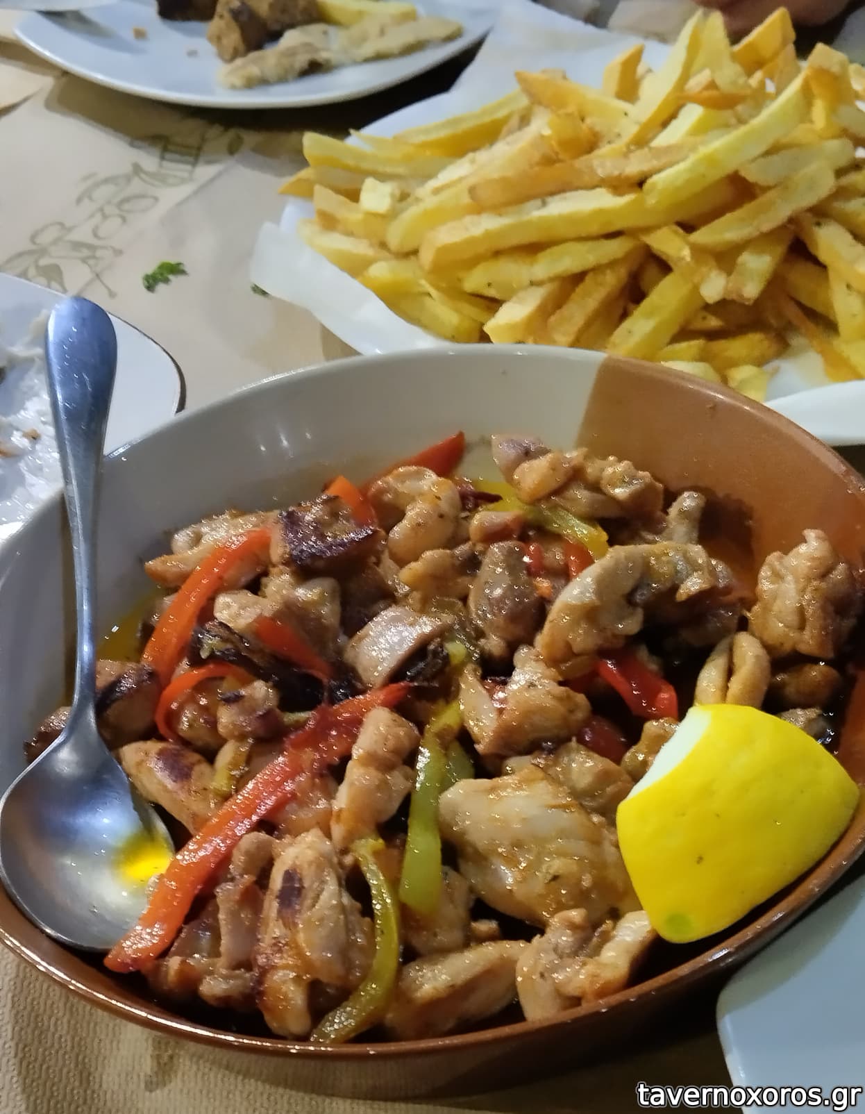 Τηγανιά κοτόπουλο, αρκετά καλή με τις πιπεριές τις, και εδώ χορταστική μερίδα.