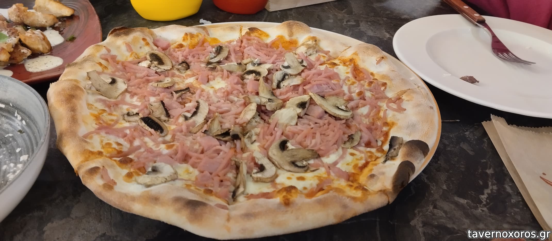 Δοκιμάσαμε πίτσα καπριτσιόζα που δεν μας ενθουσίασε. Είχε καλή ζύμη αλλά πολύ και κακής ποιότητας ζαμπόν πού περισσότερο έμοιαζε με ψιλοκομμένο παριζάκι.