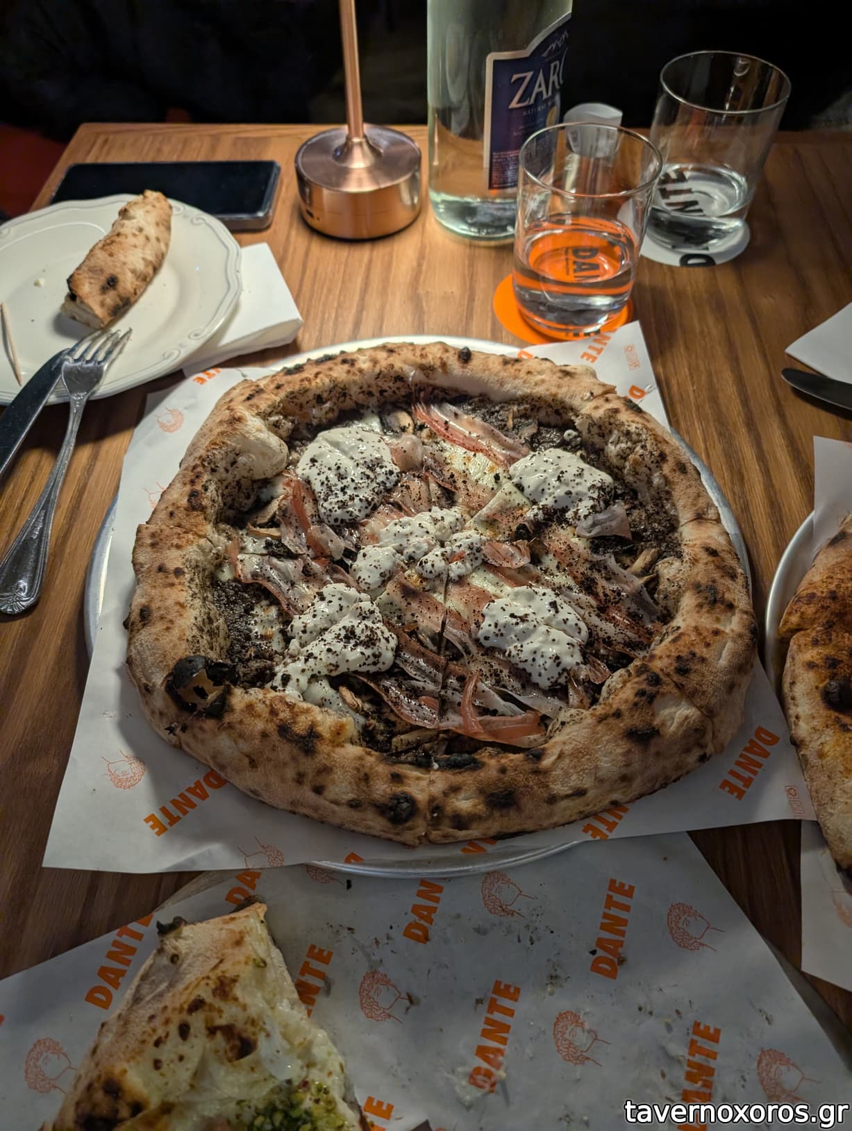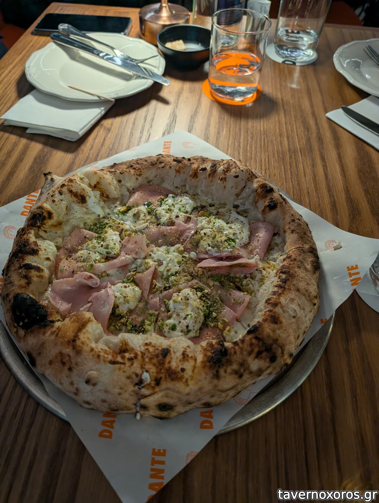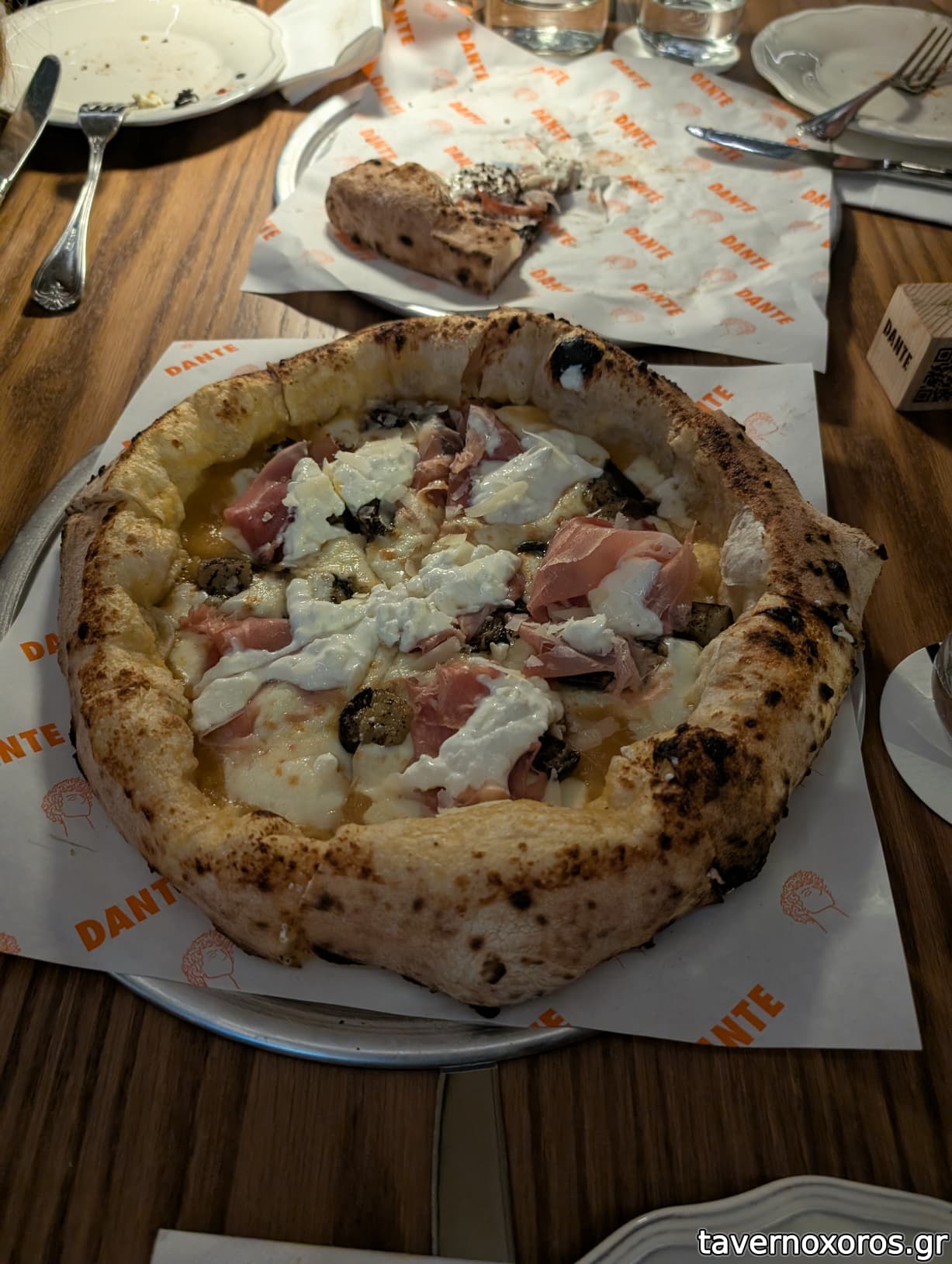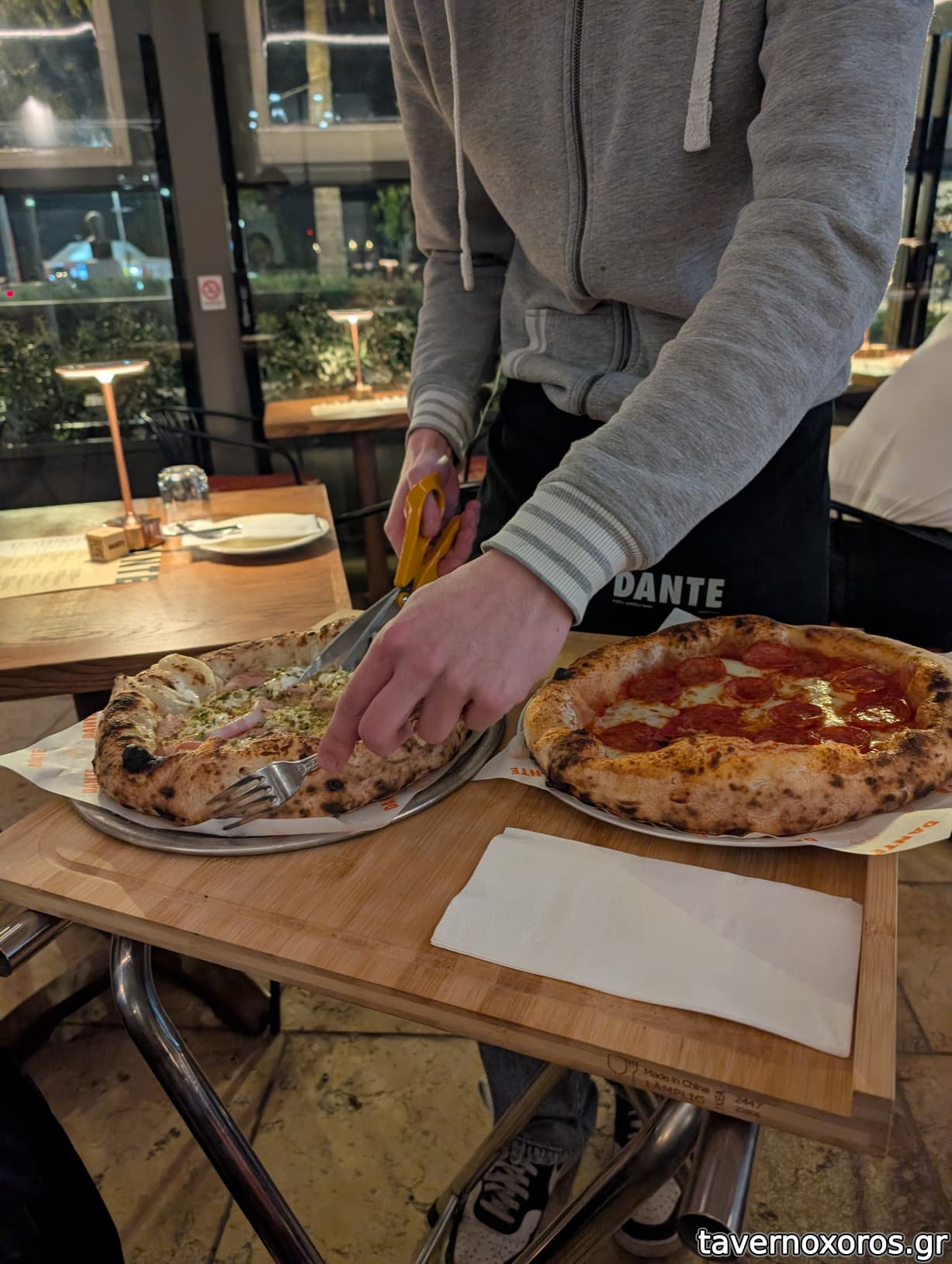 Στα της πίτσας, πρόκειται πράγματι για πίτσα ναπολιτάνικου στυλ, σε πολύ καλό επίπεδο, μέχρι και οι συνδυασμοί μου θύμισαν αντίστοιχους που είχα δοκιμάσει στην Ιταλία. Αν θέλουμε να είμαστε ψείρες, τα υλικά (όπως η στρατσιατέλα και το προσούτο κρούντο) θα μπορούσαν να είναι καλύτερης ποιότητας. Επίσης, η ζύμη χωράει βελτίωση ως προς την πολυπλοκότητα της γεύσης (που, για μένα, παίζει μεγάλο ρόλο σε μια πίτσα ναπολιτάνικου στυλ). Εντύπωση μου έκανε το σόου με το κόψιμο της πίτσας στο τραπέζι, το οποίο βρήκα εντελώς αχρείαστο. Αναρωτιέμαι τι θα γίνεται αν το μαγαζί είναι γεμάτο και χρειάζεται να κόψουν πολλές πίτσες ταυτόχρονα.
