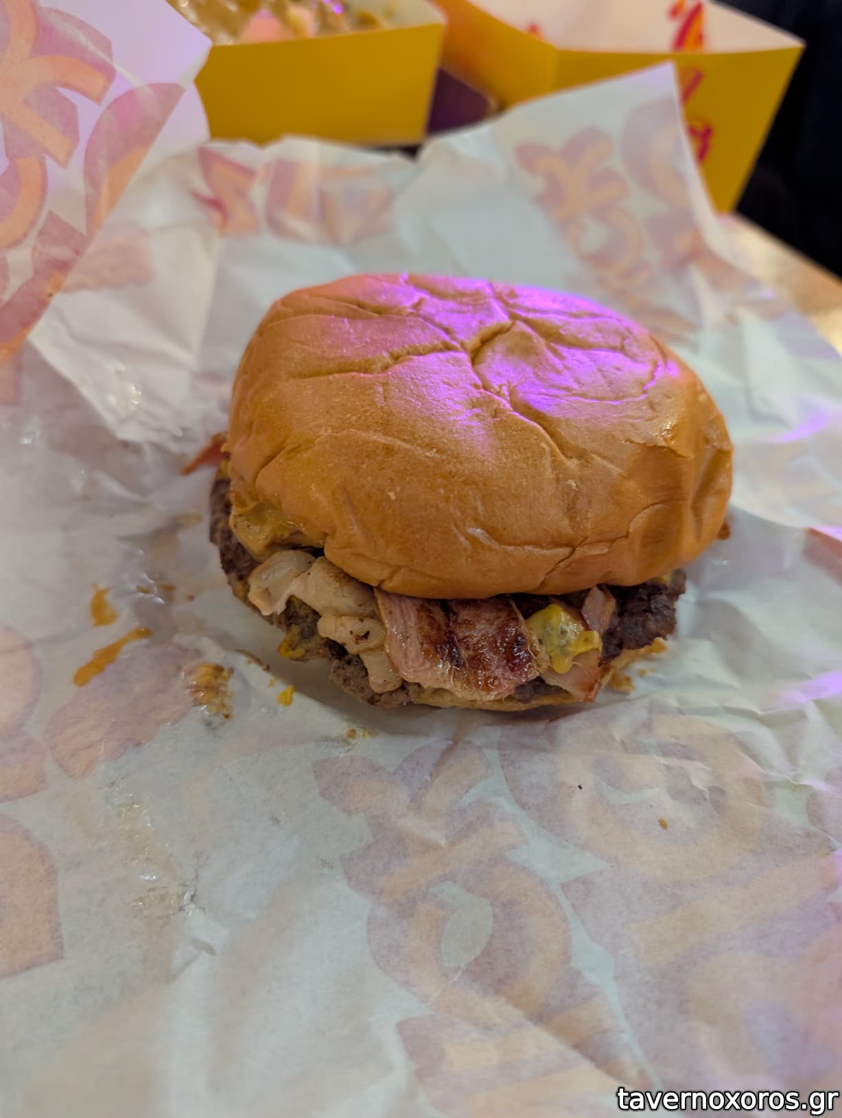 Bacon cheeseburger (καλό, νόστιμο μπέικον, η σάλτσα δεν με τρέλανε)