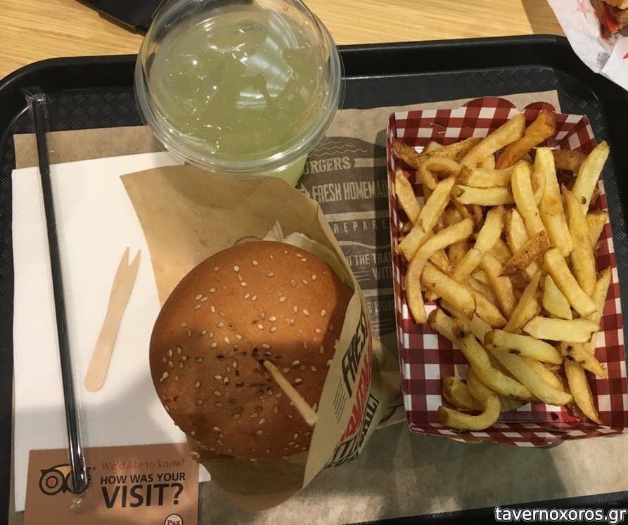 Σε αρκετά τουριστική πλέον περιοχή, και με έναν τεράστιο κατάλογο από κοτόπουλο και πίνσα μέχρι μπέργκερ με κιμτσι και mac and cheese, πήγαμε με σχετικά λίγες προσδοκίες. Και τελικά φύγαμε αρκετά ικανοποιημένοι. Το μπέργκερ με πολύ ωραίο μαλακό ψωμάκι, περισσότερο φέτα πατατόψωμου παρά brioche, αρκετά μεγάλη μερίδα, κοτόπουλο καλό και πολύ καλές πατάτες τηγανιτές. Οι γλυκοπατάτες οκ. Τιμές για μενού με πατάτες γύρω στο 10αρικο, τιμή μάλλον αρκετά φτηνή για την περιοχή και την ποσότητα. Θα ξαναπήγαινα σίγουρα. Σέρβις ευγενικό. Προτείνεται.