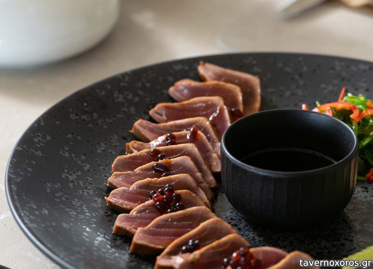 Όψη του καταστήματος με θέα την θάλασσα και το ηλιοβασίλεμα