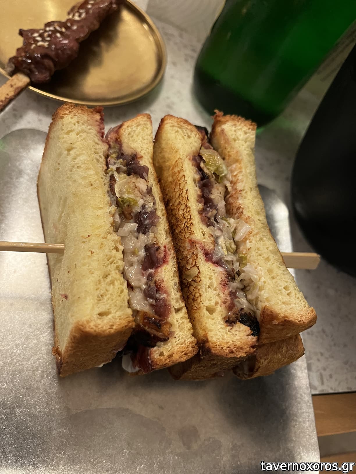 Το μαγαζί δουλεύει σάντουιτς περισσότερο από ότι κατάλαβα και εχει και 2 τραπεζάκια για να φας στα γρήγορα. Δεν μπήκα σε περισσότερη κουβέντα αλλά σε μερίδες είχαν μόνο κατσικάκι, κοκορέτσι και κοντοσούβλι κοτόπουλο.