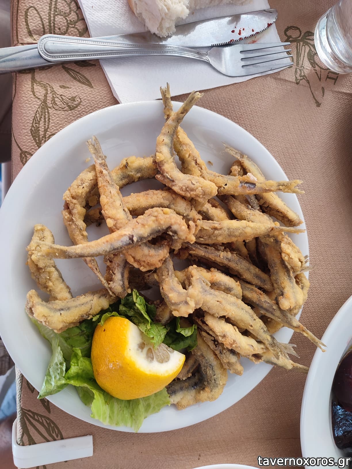 Αν και στόχευα σε αθερίνα/μαριδάκι, δυστυχώς δεν είχε. Πήραμε καλαμαράκια τηγανιτά (μια χαρά, αν και χωρίς συνοδευτικές πατάτες), σαφρίδια τηγανιτά (επίσης μια χαρά) και σαρδέλες ψητές στο φούρνο λαδορίγανη (ωραιότατες, ζουμερές). Από σαλατικό μία αγγουροντομάτα (μια χαρά) και πρότειναν να μας κάνουν μια πιατελίτσα με βλήτα/αμπελοφάσουλα/κολοκυθάκια στην τιμή της μίας σαλάτας. Όλα πολύ ωραία. Προτάθηκε και δοκιμάστηκε μια σκορδαλιά επίσης πολύ καλή. Αυτά με μία πατάτες τηγανιτές (χεράτες, καλές) και μια μπίρα βγήκαν 41,