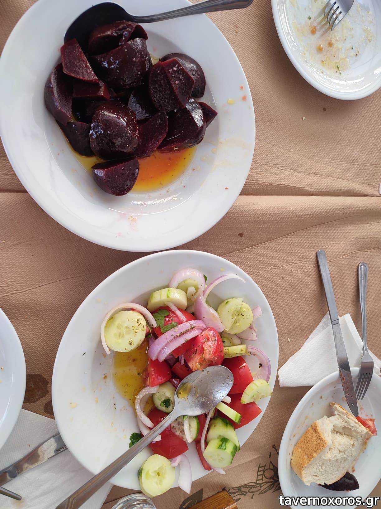 - σαλάτα πικάντικη, καλή, και παντζάρια που είχαν και τον βλαστό και ήταν ακόμα ζεστά, δείγμα ότι τα βράζουν οι ίδιοι. Ναι στο σκορδάκι.