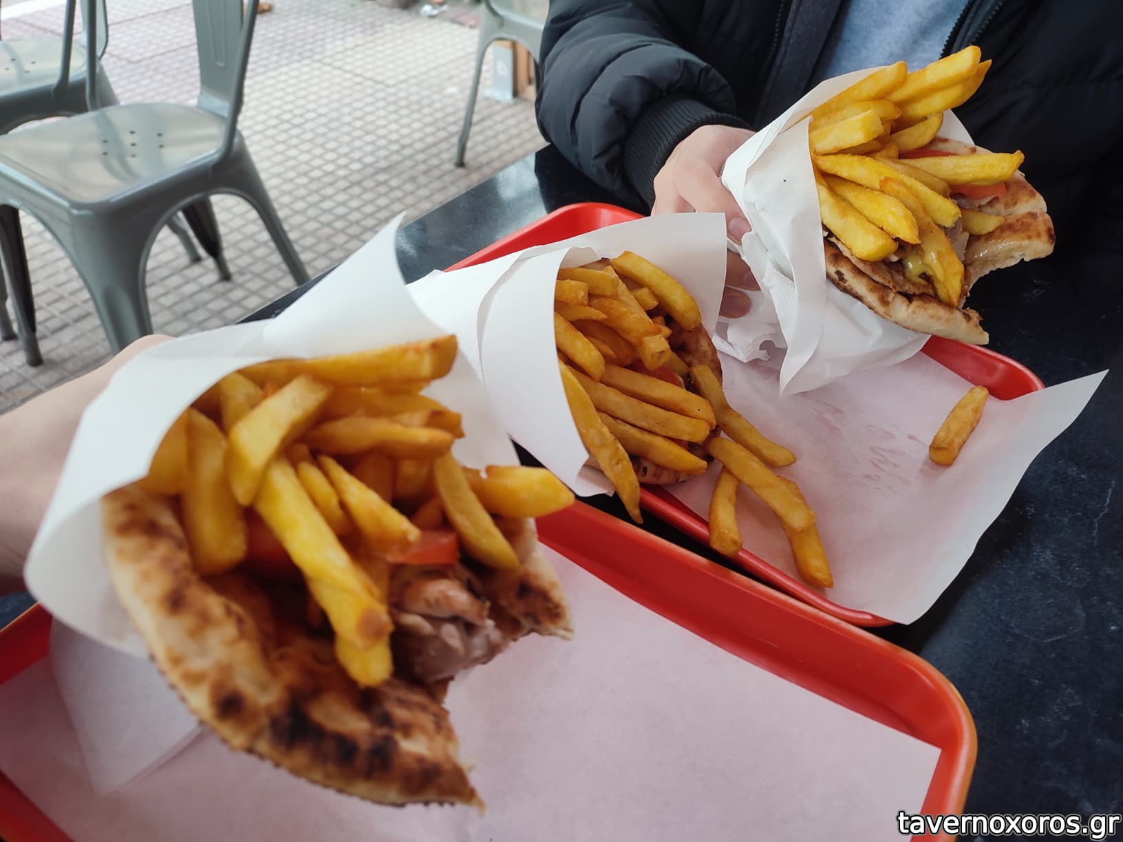 Καταρχήν επικρατεί αποδιοργάνωση και χάος. Χτυπάνε συνεχώς τηλέφωνα και ταυτόχρονα οι σερβιτόροι ρίχνουν βροχή τις παραγγελίες εκ των οποίων όλες έχουν απίθανες παραλλαγές του τύπου «χωρίς αλάτι», «οι πίτες κομμένες στα 3» κτλ. Οι πακετάδες χαμένοι κι αυτοί να ζητάνε εξηγήσεις για τα διάφορα σοκκάκια. Όταν έφτασε η σειρά μου παρήγγειλα ένα χοιρινό σουβλάκι σε ψωμάκι. Ο τύπος (αφεντικό) που δίνω την παραγγελία δυστυχώς είναι αυτός που κατευθύνει τα πάντα και που απαντάει στα τηλέφωνα. Ξεκινάει να φτιάχνει το σάντουιτς, χτυπάει το τηλέφωνο, αφήνει το ψωμάκι στην άκρη και μιλάει για τουλάχιστον 10'. Αγανάκτησα τόσο που ήθελα να φύγω. Στο μεταξύ να μαζεύονται περισσότεροι, ντόπιοι και τουρίστες, να εξυπηρετούνται κι εγώ ακόμα να περιμένω να τελειώσει με τα τηλέφωνα και τις οδηγίες. Πήρα εξοργισμένος το σάντουιτς (2,