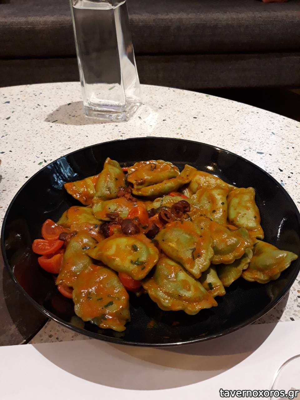 Πέτουρα Αραβησσού με μοσχάρι ραγού και κατσικίσιο τυρί (πολύ καλό)