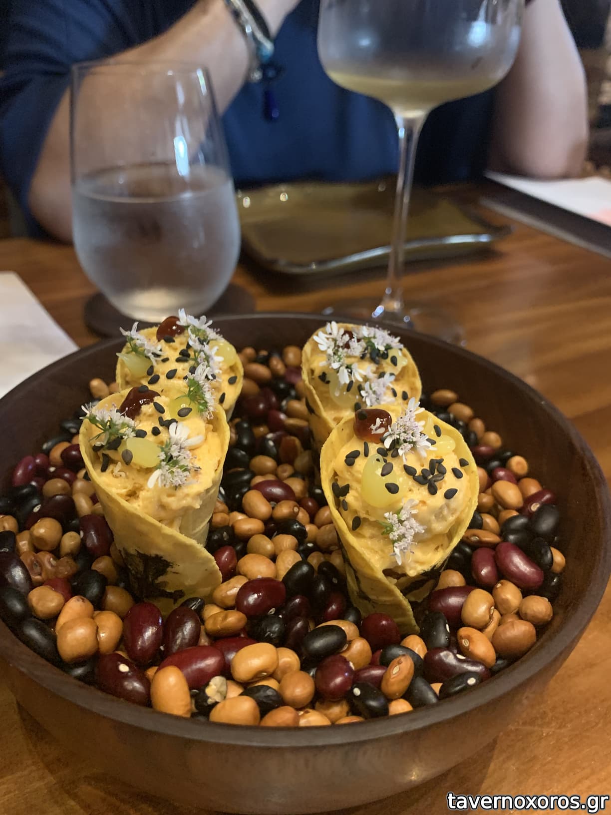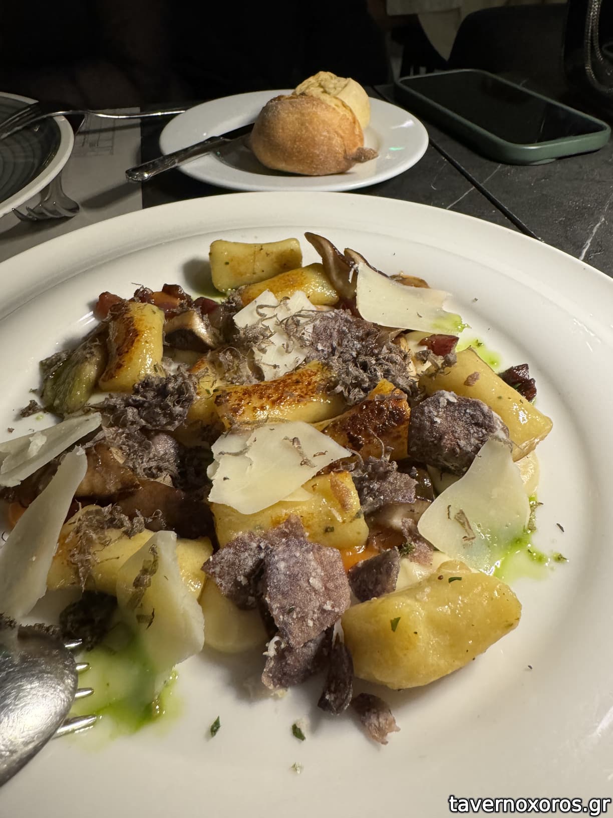 Την δεύτερη μέρα κάτσαμε στο μπαρ του μαγαζιού και φάγαμε ένα μπέργκερ που ήταν πολύ νόστιμο και τα σκιουφηχτά που ήταν χειροποίητα ζυμαρικά από την Κρήτη με πέστο κόκκινης πιπεριάς και κουκουνάρι! Ήταν επίσης πολύ νόστιμα και χορταστικά!