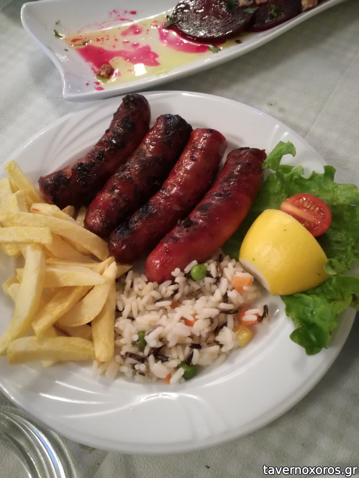 μετρια: λουκανικα με πιπεριες (το πιατο καλο, αδικείται απ το λουκανικο)