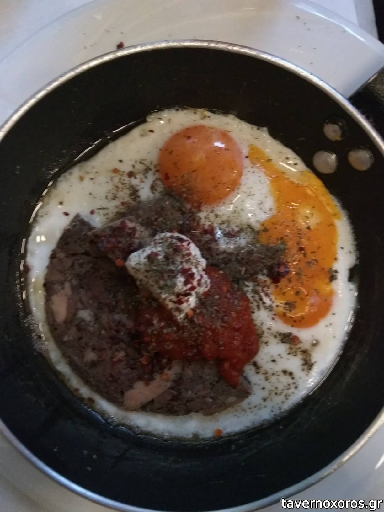 πολυ καλο: χορτα τσιγαριστα με φωτα ντοματα αυγο, ριζοτο με βουβαλισιο καβουρμα & ξινομυζηθρα
