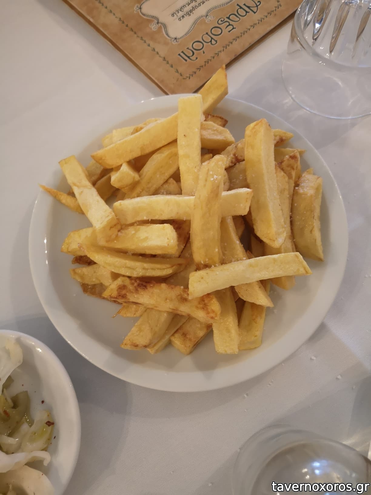 Αντίθετα, οι πατάτες δεν μου άρεσαν. Ήταν υπερβολικά λεπτές, σε σημείο που το τηγάνισμα τις έκανε σχεδόν τσιπς. Προτιμώ τις πιο μπαμπάτσικες, γούστα είναι αυτά..