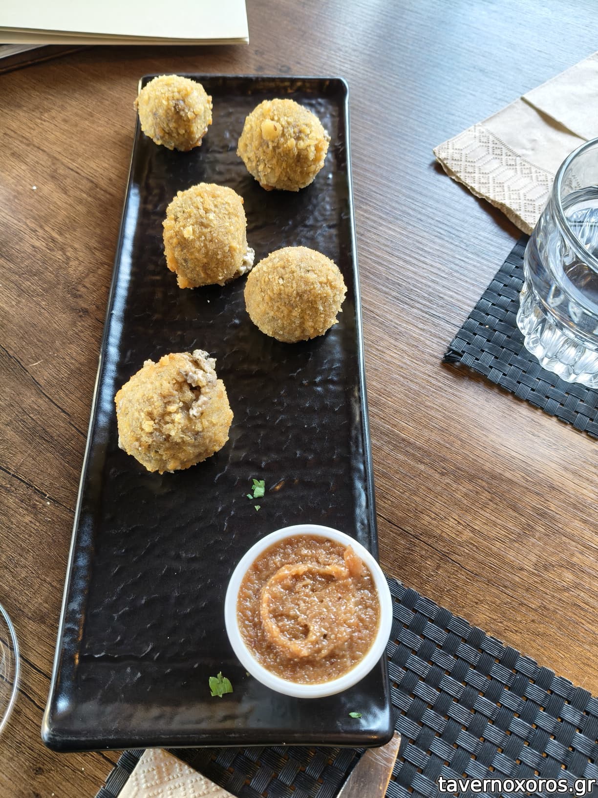 Μανιταροκροκέτες (πολύ καλές, ταιριαστή η μαρμελάδα μπέικον)