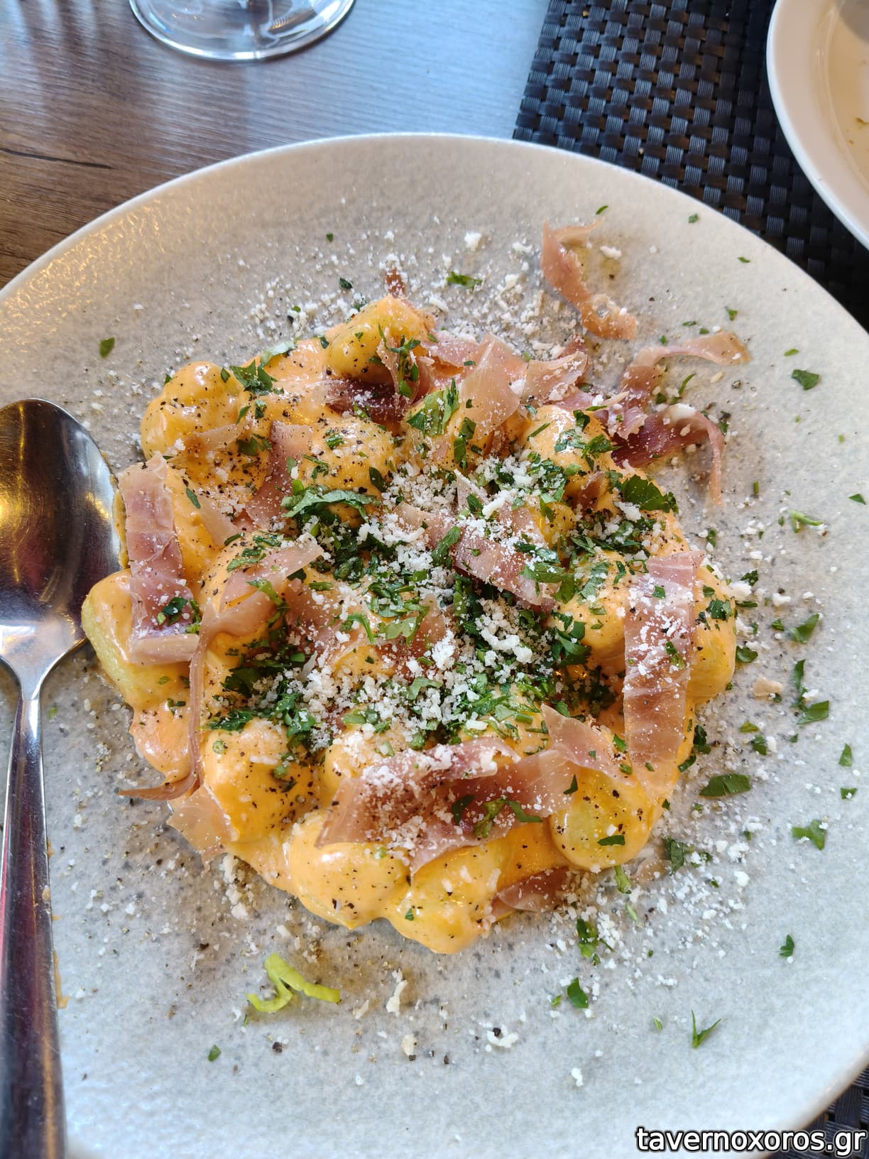 Νιόκι με προσούτο και κρέμα τυριών και κόκκινης πιπεριάς (δεν ανταποκρίθηκε στις προσδοκίες)