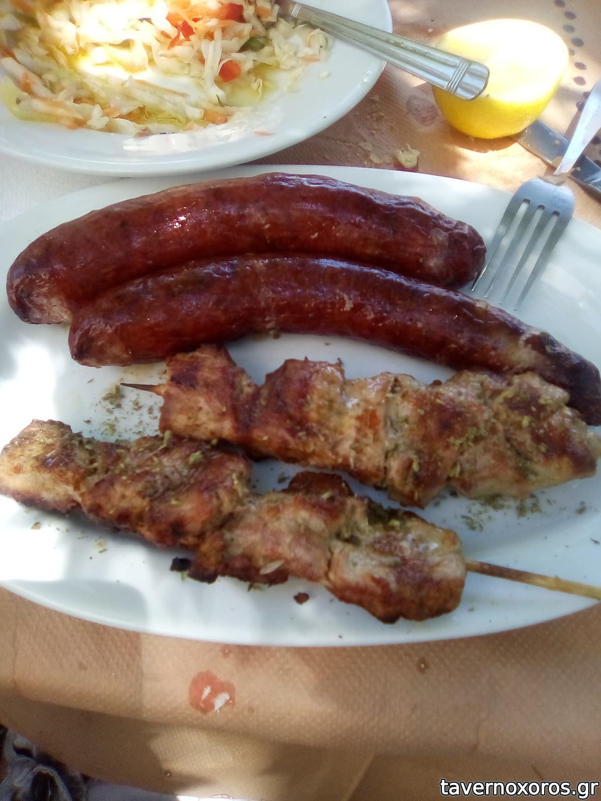 Η χωριάτικη με φρέσκα λαχανικά και καλό τυρί, καλαμαράκια (κατεψ) καλοτηγανισμένα όπως επίσης και τα κολοκυθάκια, σουβλάκια χοιρινά μεγάλα καλά, οι πανσέτες με λίγο παραπάνω λίπος και τέλος τα σνίτσελ κοτόπουλου όπου η σάλτσα μανιταριών ήταν μεγάλη απογοήτευση και χάλασε το πιάτο.