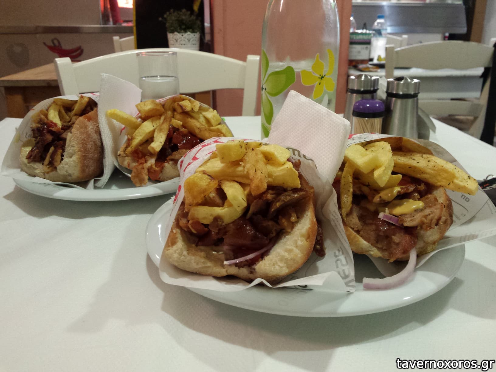 κοντοσουβλι χοιρινο και γυρος χοιρινος σε σαντουιτς αριστα.