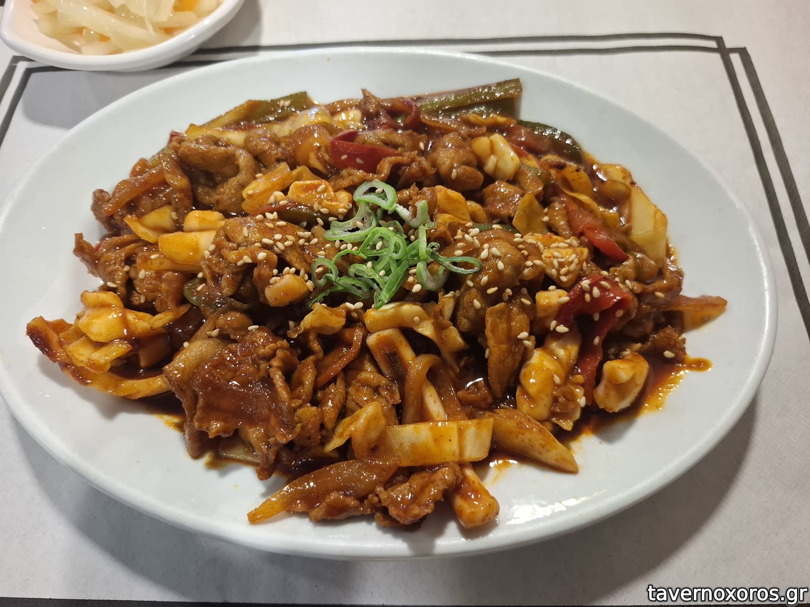 Osam bulgogi (grilled pork and calamari in spicy sauce with vegetables)