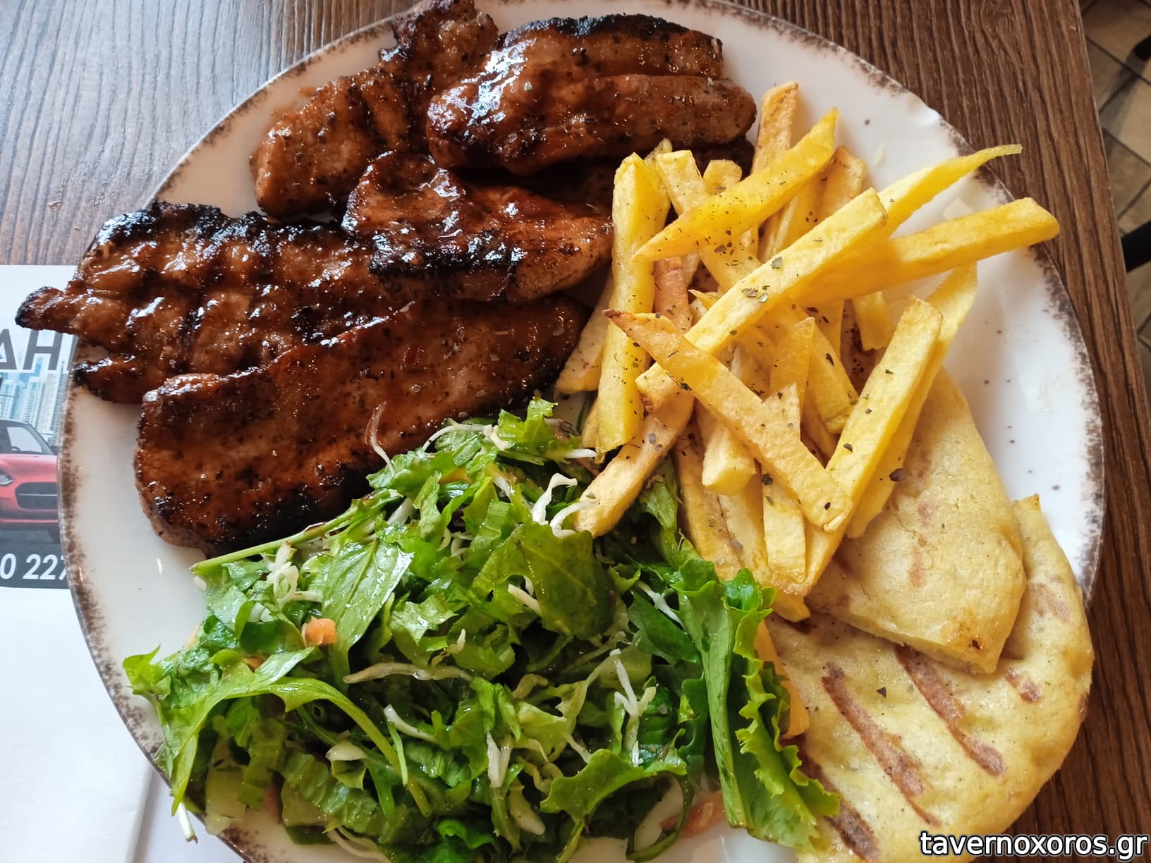 Ιούλιος 2025, άτομα 5, πήραμε 1 ντοματοσαλάτα, 1 τζατζίκι, 1 κοπανιστή, 1 τυροπιτάρι, 1 λουκάνικο, 1 μπιφτεκάκια, 1 πανσέτες, 1 χοιρινά σουβλάκια, 1 πατάτες τηγανητές φρέσκιες, ½ κιλό "