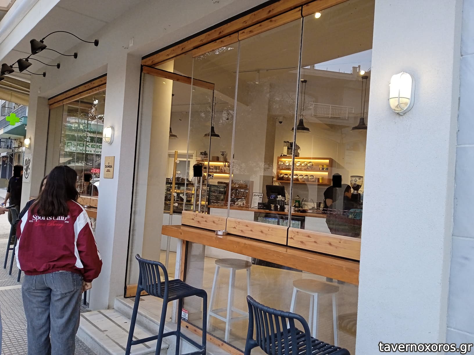 Εσωτερικά πάτωμα με μωσαϊκό, μια ξυλόσομπα, μια μικρή παλιά τηλεόραση σε άκυρο σημείο (πίσω από τα ψυγεία), τραπεζάκια απλά ξύλινα, καρέκλες καφενείου λιτές. Εξωτερικά άφθονη σκιά για το καλοκαίρι από αιωνόβιο πλατάνι. Κλίμα λαϊκό, θαμώνες ντόπιοι, συνήθως άντρες κατά μόνας.