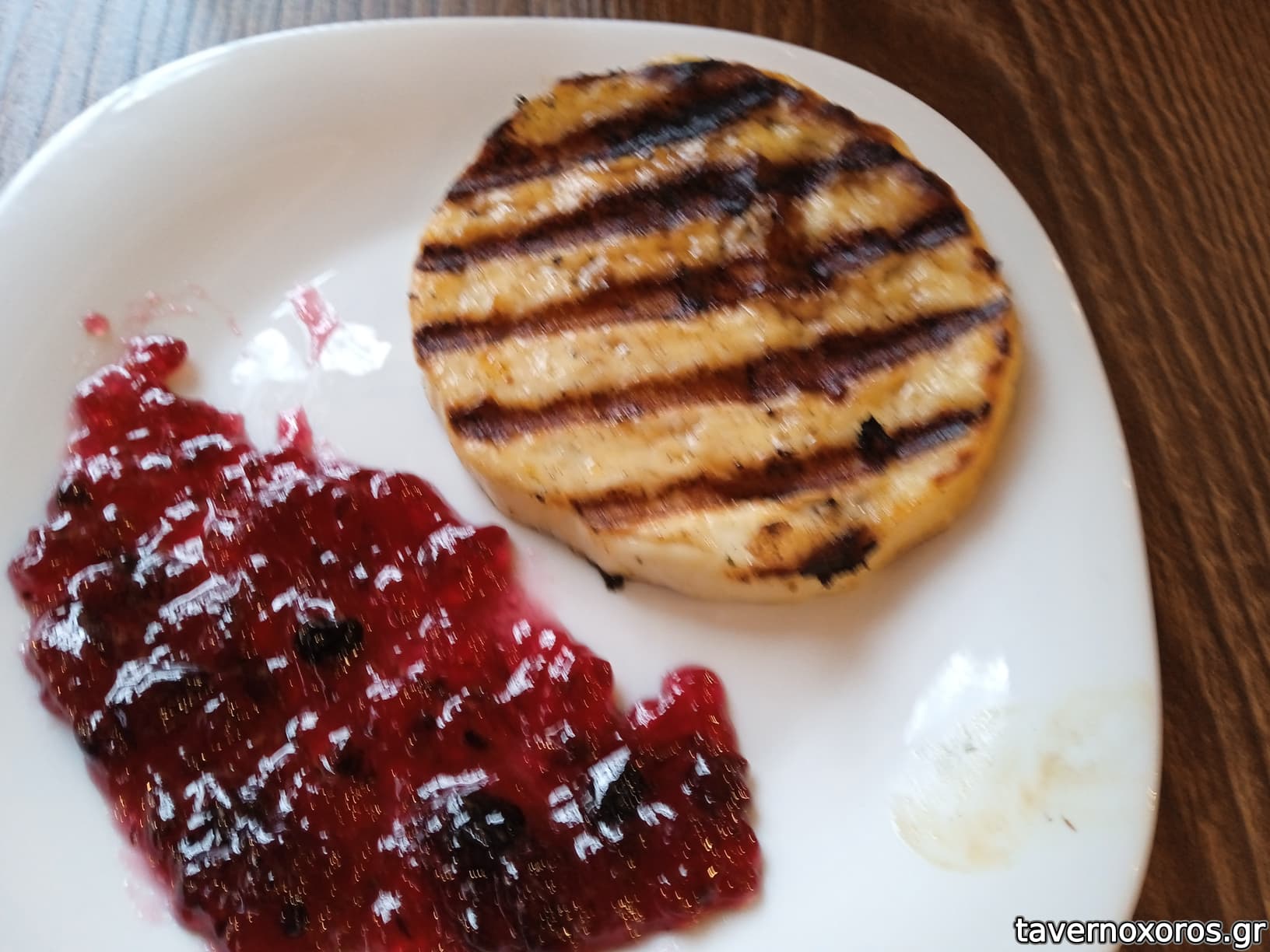 Ταλαγάνι ψητό με μαρμελάδα βύσσινο
