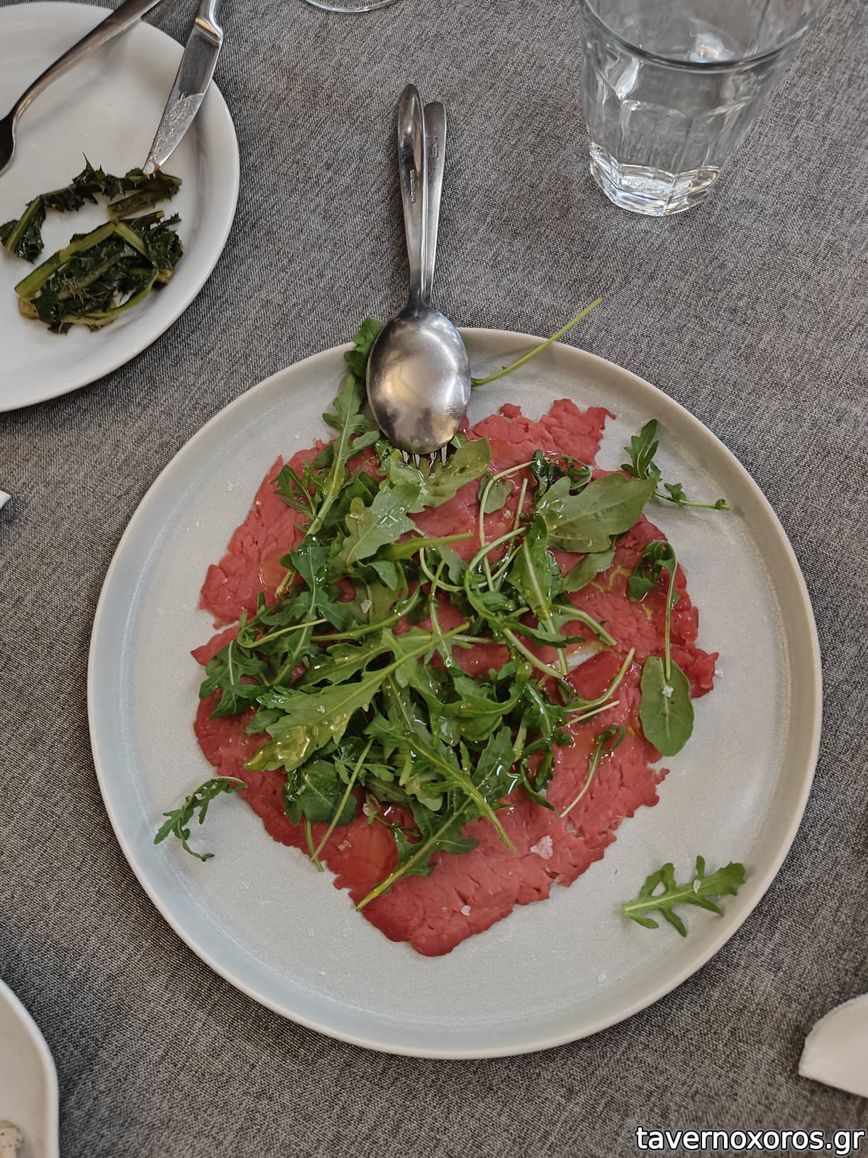 Φάβα με τσιγαριαστά χόρτα και λάδι δυόσμου