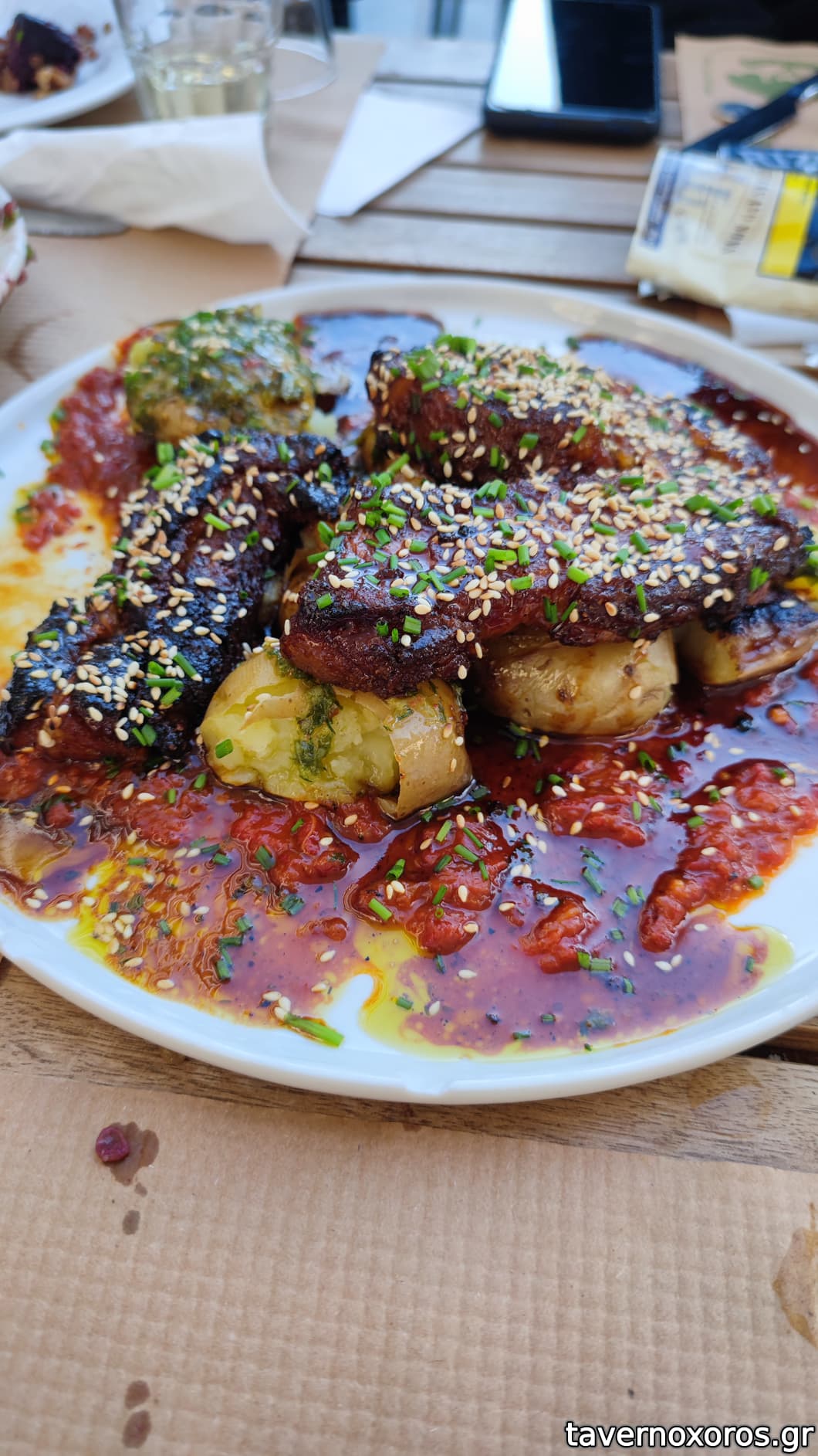 Σιγοψημένη πανσέτα σχάρας γλασαρισμένη με πετιμέζι και πατάτες baby (λουκούμι)