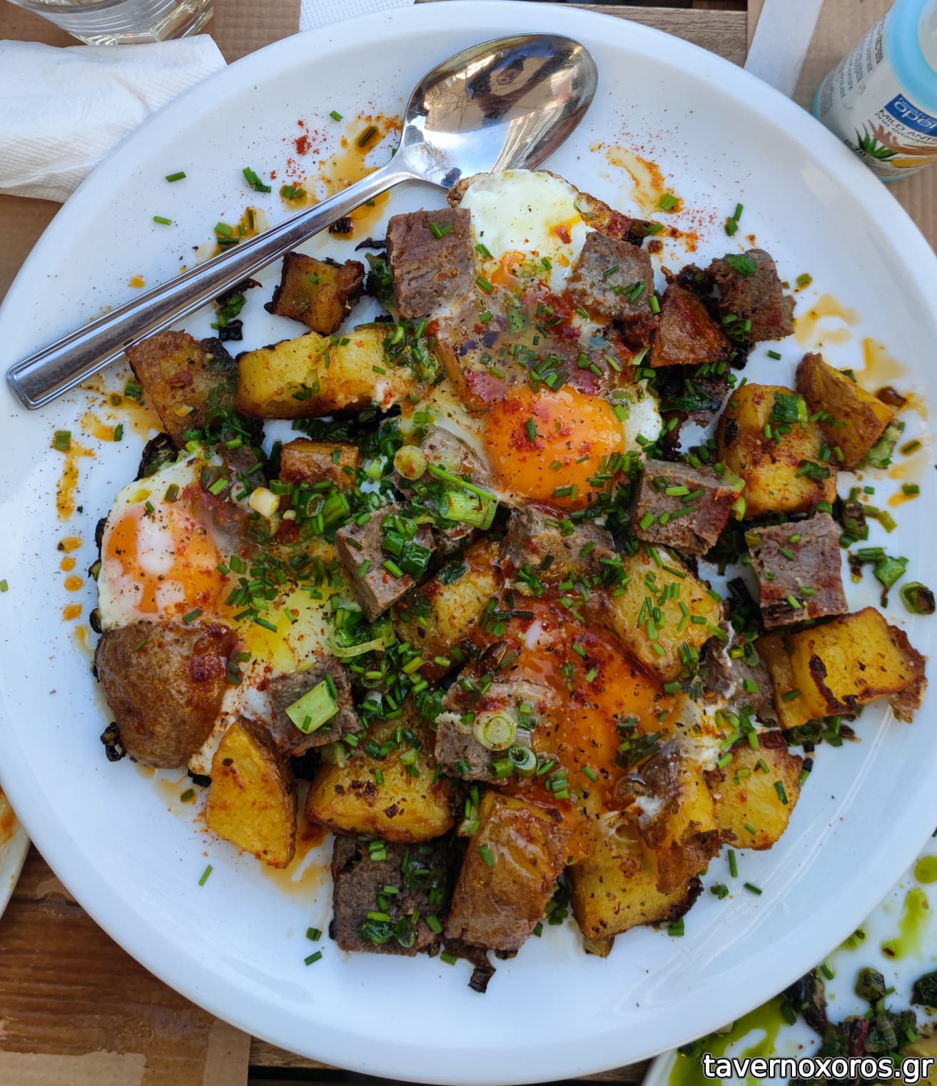 Πατάτες με αυγά μάτια και καβουρμά (δυνατό)