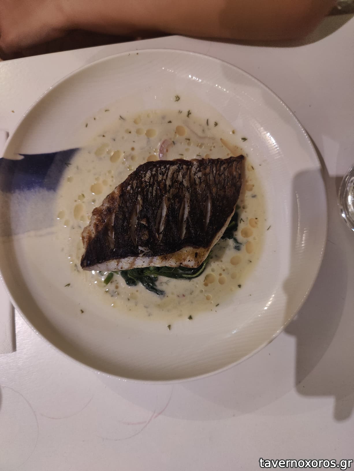 Άψογα ψημένο φιλέτο μυλοκόπι, πάνω σε χόρτα και σε μια σάλτσα γιαουρτιού. Απλά υπέροχο