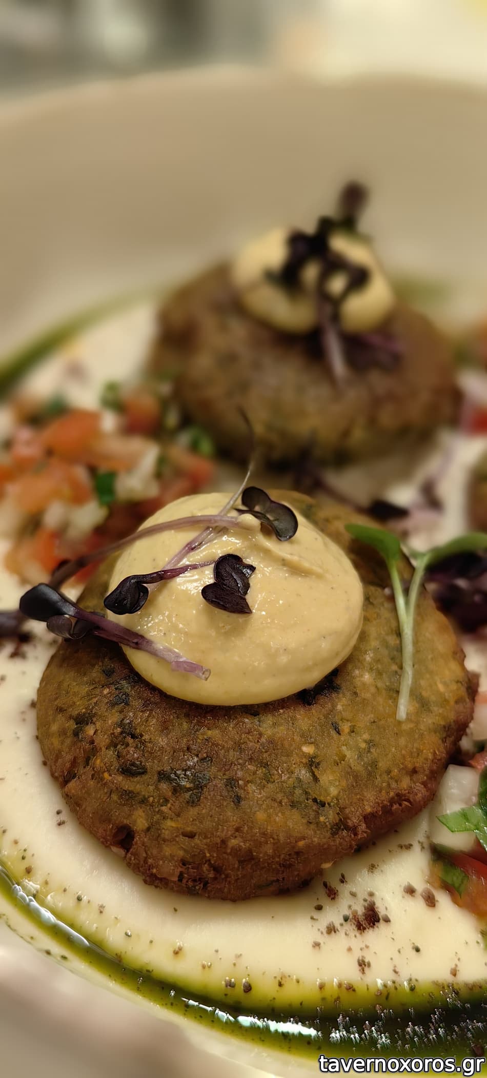 -Ρεβυθοκεφτεδες με πουρε φασολιου και σαλτσα ταχηνι. Το λιγοτερο δημοφιλες πιατο στο τραπεζι. Μετριοτητα.