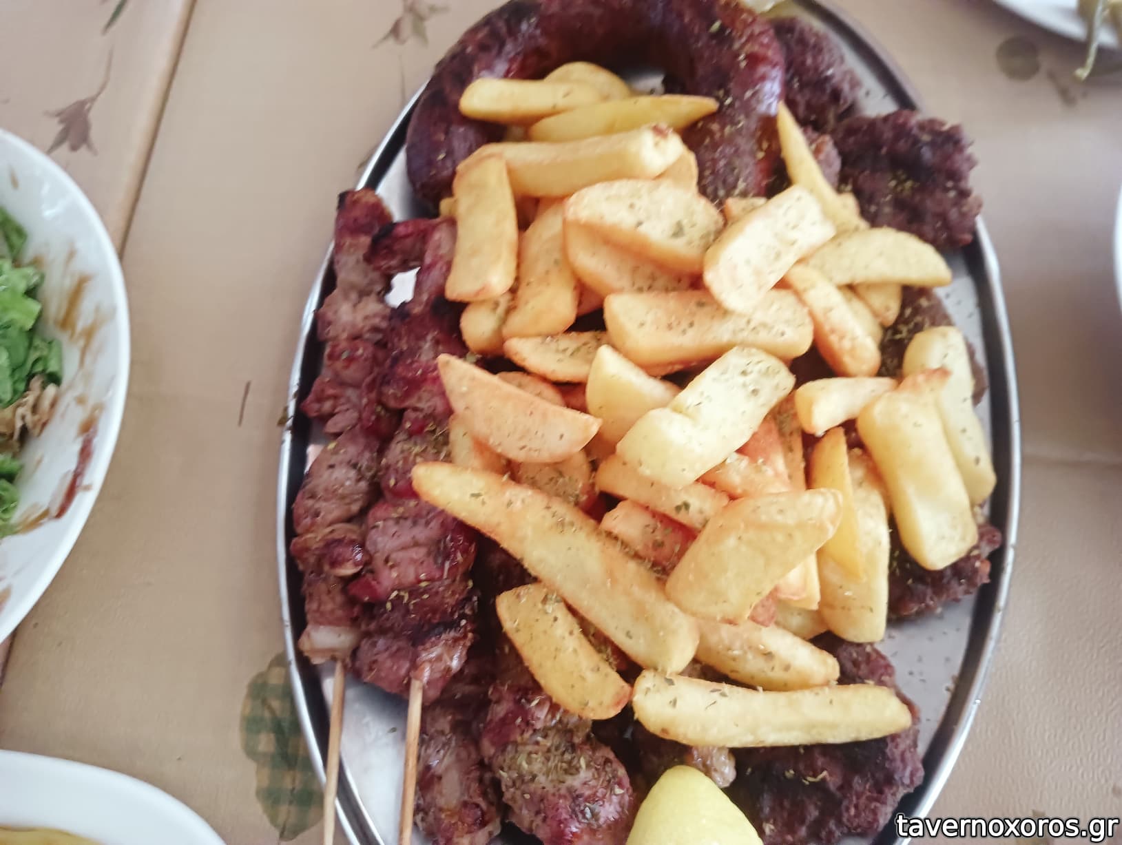 Ταβέρνα στο κέντρο του χωριού. Περιποιημένος καθαρός χώρος με όμορφα τραπεζάκια στο πεζοδρόμιο. Πήραμε διάφορες σαλάτες, παντζάρια, αγγουροντομάτα, ρόκα και μια ποικιλία κρεατικών που είχε κεφτέδες δλδ μπιφτεκάκια ψητά, αρνίσια σουβλάκια και λουκάνικο πικάντικο μοσχαρίσιο. Πατάτες προκάτ. Δεν σερβίρει τίποτε σε χοιρινό. Τα κρέατα ήταν νόστιμα αλλά δυστυχώς τα αδίκησε το ολικού στεγνώματος ψήσιμο. Τιμές δεν γνωρίζω, ήταν κέρασμα και θα ξαναπήγαινα, με αυστηρές οδηγίες στον ψήστη.