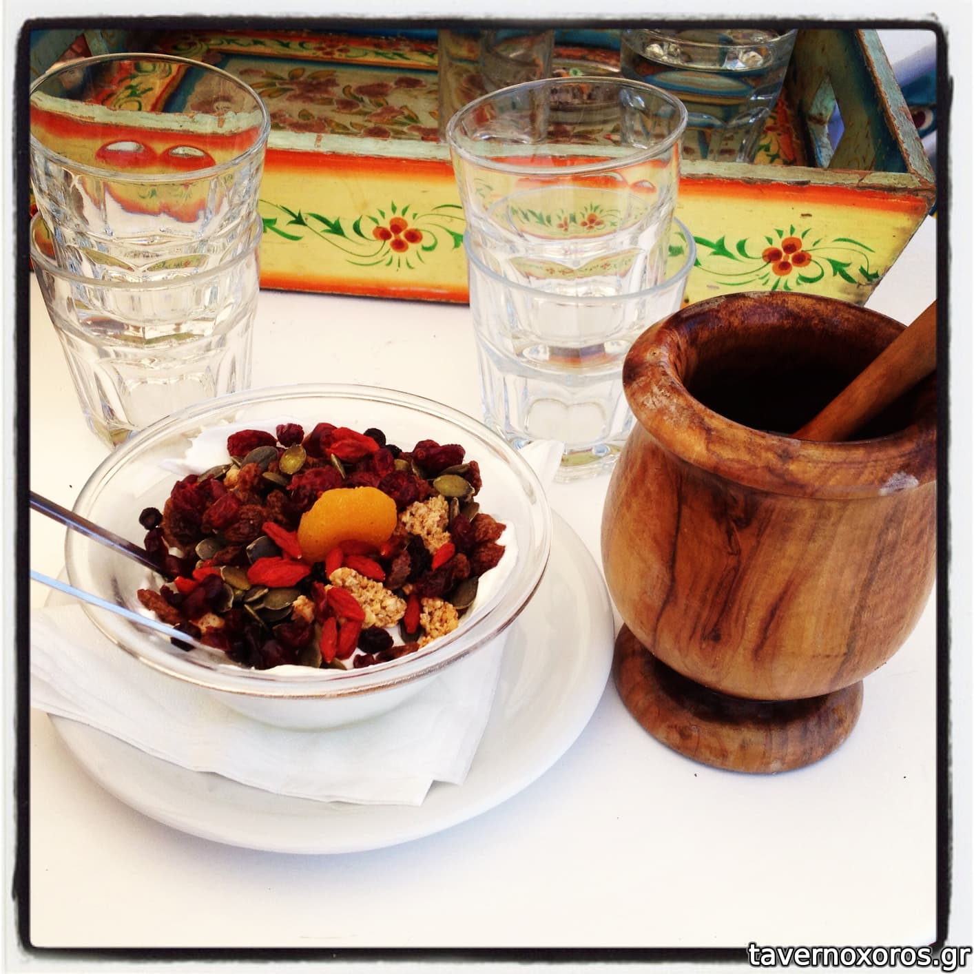 Πάντα σερβίρει κουλουράκια φρεσκοψημένα με τον καφέ ή κέικ και με το ποτό κασέρι, ξηρούς καρπούς και ψωμάκια με διάφορες σως,
