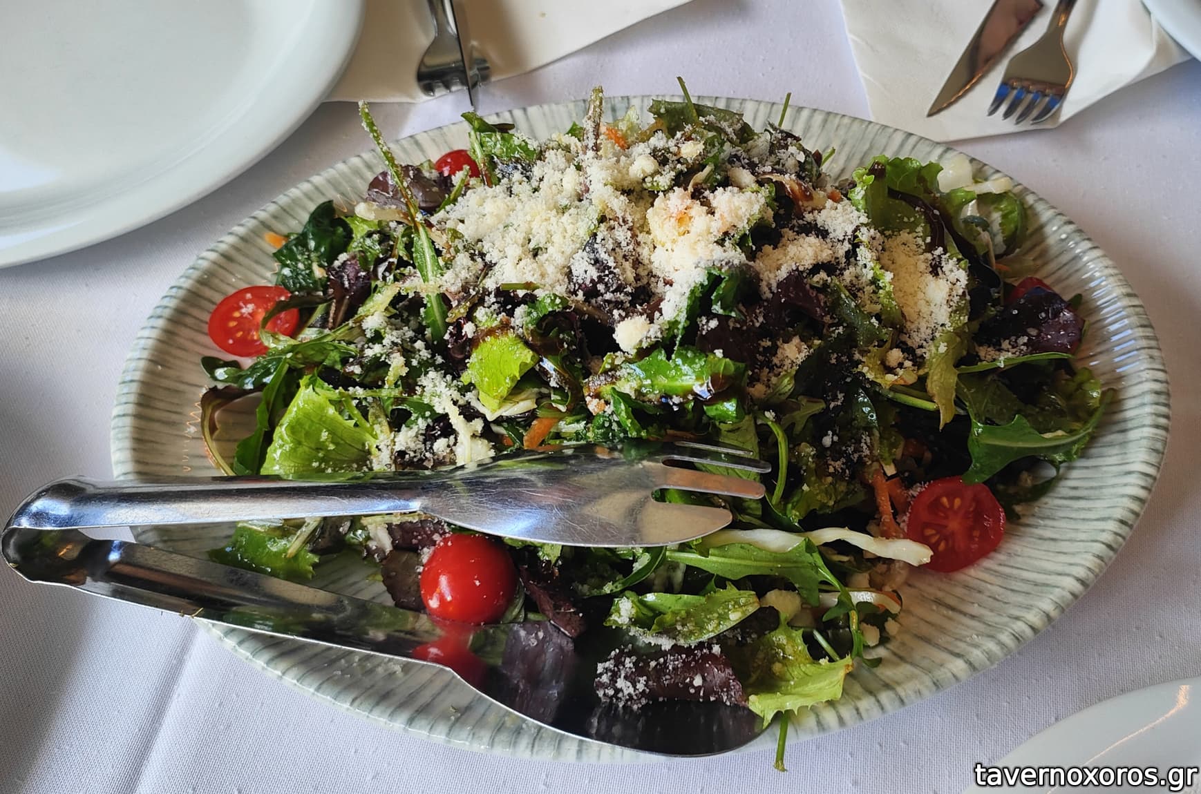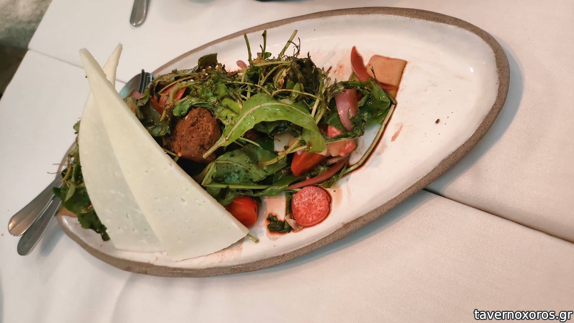 Ομοίως οι σαλάτες είχαν πολύ λίγο λάδι , οι τηγανισμένες πατάτες χοντροκομμένες, το ψωμί ήθελε λίγο περισσότερο φρυγανισμα .