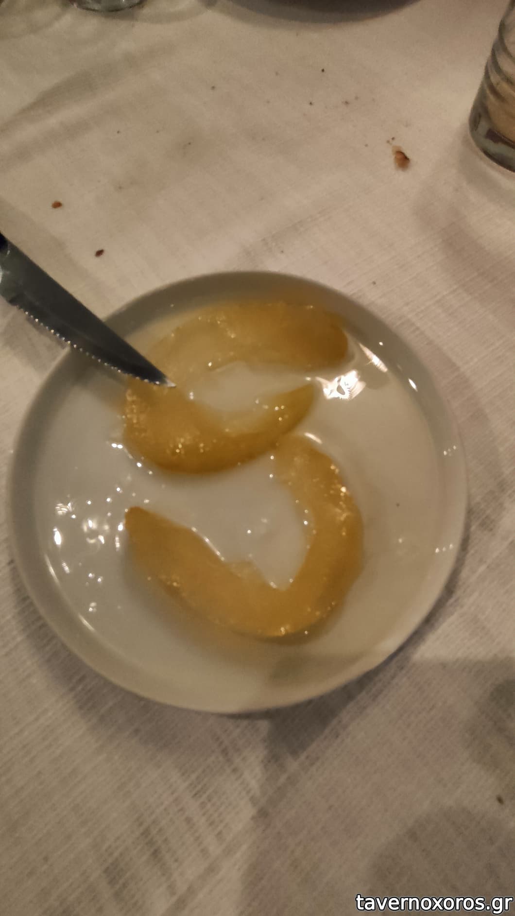 Κερασμένο στο τέλος πεπόνι , ενώ μας προσφέρθηκε και γλυκό το οποίο αρνηθήκαμε .